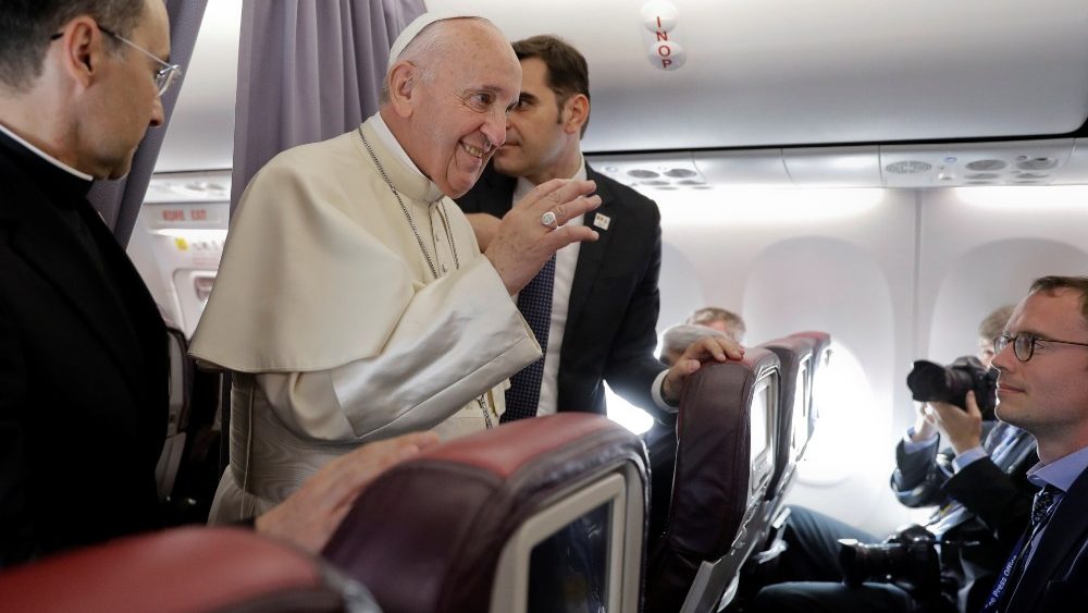 R. – «Io non ho ricevuto nessuno del governo, eccetto il premier Conte che ha fatto richiesta come da protocollo. È stata una bella udienza, di un’ora. È un uomo intelligente, professore, sa ciò di cui parla. Dai vicepremier e da altri ministri non ho ricevuto richieste di udienza. Sulle immagini in campagna elettorale: io ho confessato tante volte che di giornali ne leggo due: il giornale del partito, cioè “L’Osservatore Romano”, questo lo leggo e sarebbe bello che voi lo leggeste, perché lì ci sono chiavi di interpretazione molto interessanti e anche cose che io dico ci sono lì. E poi “Il Messaggero”, che mi piace, perché ha dei titoli grossi: io lo sfoglio così, alcune volte mi fermo lì. E non sono entrato in queste notizie delle propagande, come ha fatto un partito la propaganda elettorale o un altro. Ma c’è un terzo elemento, ma in questo mi confesso ignorante: io non capisco la politica italiana. E’ vero, devo studiarla: non la capisco. Dire un’opinione su atteggiamenti di una campagna elettorale di uno dei partiti senza informazione, così, sarebbe molto imprudente da parte mia. Io prego per tutti, perché l’Italia vada avanti, perché gli italiani si uniscano e siano leali. Anche io sono italiano perché sono figlio di emigranti italiani: nel sangue sono italiano. I miei fratelli, tutti hanno la cittadinanza. Io non ho voluto averla perché nel tempo che l’hanno acquisita io ero vescovo, e io ho detto: “No, il vescovo dev’essere della patria”, e non ho voluto prenderla. E per questo non la ho. C’è nella politica di tanti Paesi – tanti – la malattia della corruzione: dappertutto. Dappertutto: non dite domani “il Papa ha detto che la politica italiana è corrotta”: no. Io ho detto che una delle malattie della politica, dappertutto, è scivolare sulla corruzione… è universale. Per favore, eh? Non fatemi dire quello che non ho detto. E una volta mi hanno detto come sono i patti politici: figurati una riunione di nove imprenditori al tavolo; discutono per mettersi d’accordo sullo sviluppo delle loro imprese e alla fine, dopo ore e ore e ore e caffè e caffè e caffè, si mettono d’accordo. Hanno preso il verbale, fanno il riassunto, lo leggono … d’accordo? D’accordo. Mentre lo fanno stampare prendono un whiskey per festeggiare e poi incominciano a girare le carte per firmare l’accordo. Nel momento che girano le carte, sotto il tavolo, io e quello … ne faccio un altro sotto il tavolo. Questo è corruzione politica, che si fa un po’ dappertutto. Dobbiamo aiutare i politici a essere onesti, a non fare campagna con bandiere disoneste – la calunnia, la diffamazione, gli scandali … E tante volte, seminare odio e paura: questo è terribile. Una politica, un politico mai, mai deve seminare odio e paura. Soltanto speranza. Giusta, esigente: ma speranza. Perché deve condurre il Paese, e non dargli paura»