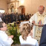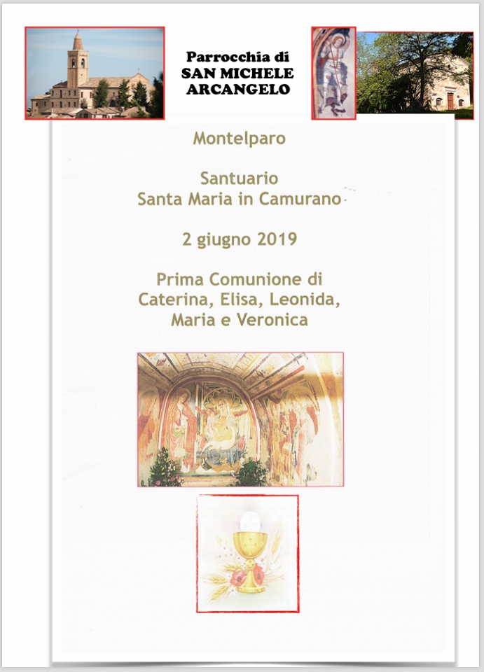 MONTELPARO – Caterina, Elisa, Leonida, Maria e Veronica: questi i bambini che, preparati a dovere dalle catechiste guidate da Vittoria Schiavone, oggi, nel Santuario Agreste di Santa Maria in Camurano di Montelparo, hanno ricevuto il Sacramento della Prima Comunione dalle mani di Padre Emanuele D’Aniello, Priore-Parroco della Parrocchia di San Michele Arcangelo.