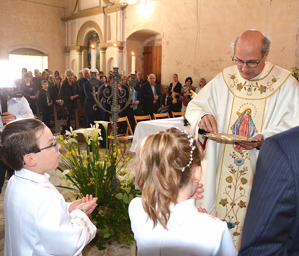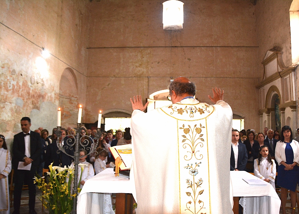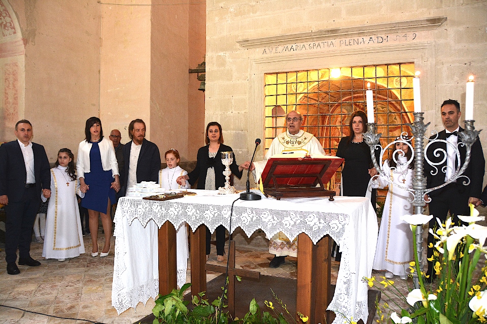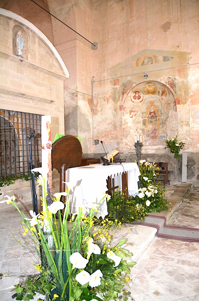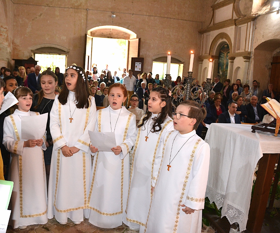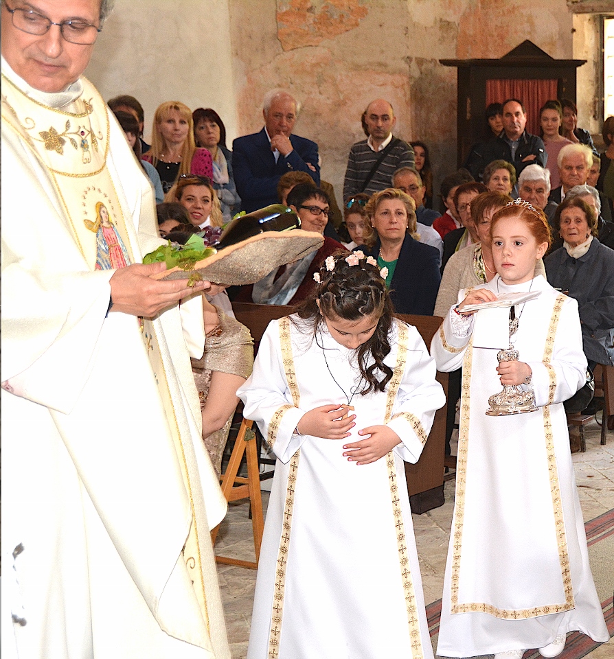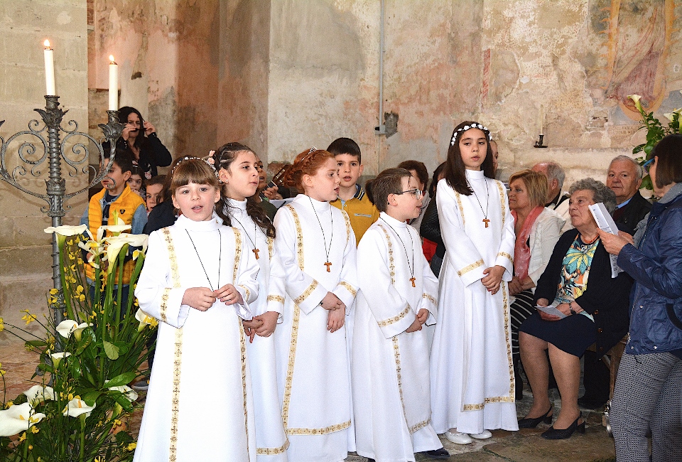 La Chiesa di Santa Maria è stata accuratamente preparata per l’occasione con il decisivo intervento di tutte le mamme dei comunicandi che hanno supportato brillantemente l’organizzazione parrocchiale. Essa, presentandosi in una particolare e bellissima veste floreale e dall’alto dei suoi meravigliosi affreschi recentemente restaurati (quelli della cappellina interna), ha meravigliato tutti gli intervenuti!