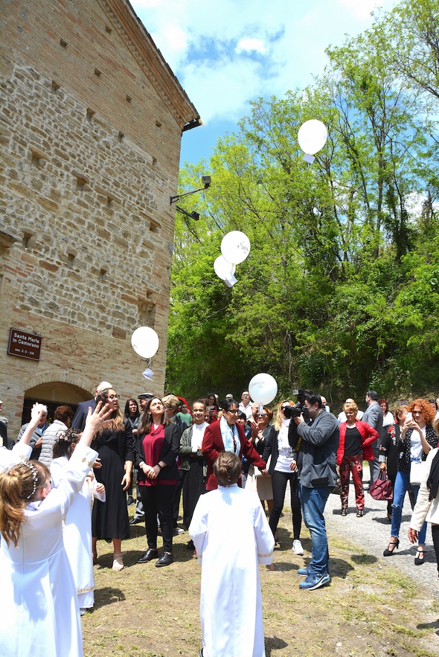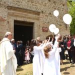 Guidati quindi dal Priore, tutti all’esterno della Chiesa dove, i bambini appena comunicati, hanno lanciato in aria dei bianchi palloncini che recavano la scritta del loro nome!