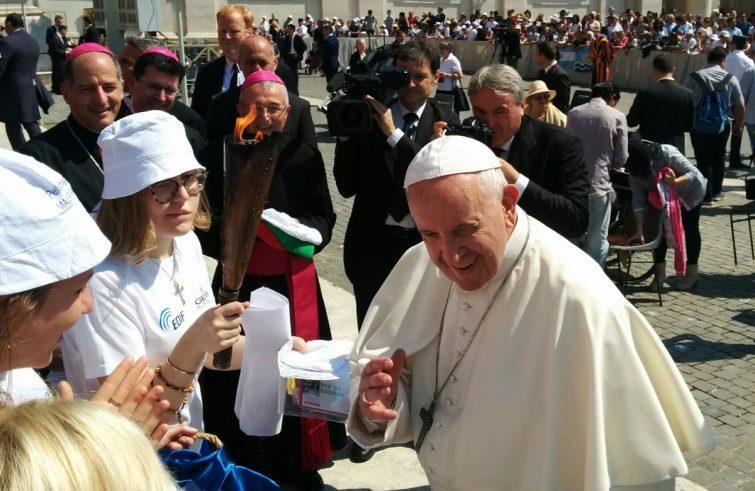 Papa Francesco ha benedetto ieri mattina in piazza San Pietro la Fiaccola per la pace del 41° pellegrinaggio a piedi Macerata-Loreto, che raggiungerà lo stadio Helvia Recina di Macerata sabato prossimo, dopo un percorso di circa 300 chilometri. A salutare il Papa, prima dell’udienza generale, mons. Giancarlo Vecerrica, ideatore del cammino e vescovo emerito di Fabriano-Matelica, mons. Fabio Dal Cin, arcivescovo di Loreto, e mons. Giampietro Dal Toso, presidente delle Pontificie opere missionarie. Papa Francesco ha salutato personalmente il gruppo di 25 atleti della Fiaccola, provenienti soprattutto da Marche, Puglia e Umbria ed accompagnato dalla tedofora Lucia Calzolaio, studentessa universitaria, insieme ad una delegazione di volontari del pellegrinaggio, presenti a Roma per l’occasione. “Ci sentiamo sabato”. Questo l’appuntamento che, con grande familiarità, Papa Francesco ha dato a mons. Vecerrica e alla delegazione che ha portato la fiaccola in piazza San Pietro. Prima di benedire la Fiaccola, Francesco si è brevemente intrattenuto soprattutto con la tedofora, dalla quale ha ricevuto il kit del pellegrinaggio insieme con una raccolta di poesie e un messaggio personale; lasciandosi fotografare con tutto il gruppo ha salutato tutti con le parole: “Dio vi benedica. Pregate per me”. Anche nel percorso di quest’anno – anticipano Paolo Cesanelli e Tonino Pedano, responsabili per il Comitato pellegrinaggio della Fiaccola per la pace – la fiaccola raggiungerà come prima tappa il monastero delle Trappiste di Vitorchiano, dove i podisti ed i loro accompagnatori si uniranno in preghiera nella recita dell’Ora nona al termine della quale, dopo il canto e la lettura del messaggio di Julián Carrón, presidente della Fraternità di Comunione e liberazione, verrà riaccesa la fiaccola. In serata alle 19 è previsto l’arrivo a Terni.