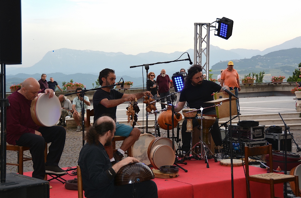 Così hanno esordito, prima ancora di farci ascoltare il loro particolare e affascinante modo di fare musica, questa sera 9 giugno 2019 dal palco installato in piazza Marconi di Montelparo, i Frame Drums IItalia!