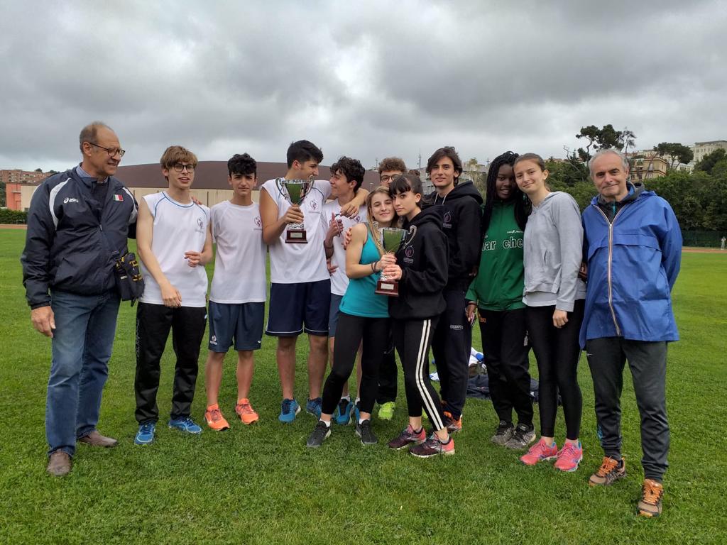 Questo il team femminile vincitore: M 100 Elena Giorgini (1^ A), M 100 HS Anthea Pagnanelli (2^ S); M400 Giulia Rossi (3^ B); M1000 Gaia Di Giacinti (2^ D); salto in alto Ludovica Bruni (3^ S); getto del peso Giorgia Di Salvatore (2^ S); salto in lungo Alena Binni e Giulia Iozzi (3^ C) con oro regionale; lancio del disco Eva Polo (2^ A) con oro regionale; staff. 4X100 Rossi, Binni, Di Salvatore e Pagnanelli argento regionale.