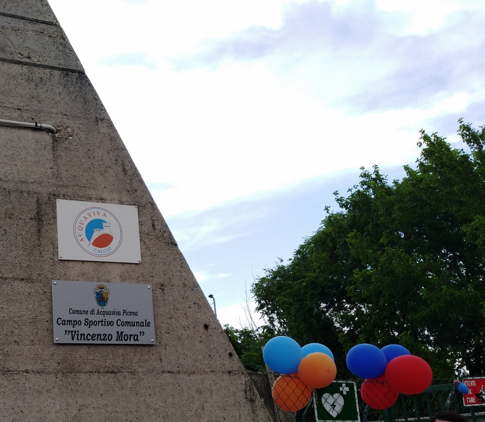 ACQUAVIVA PICENA – Sabato 15 giugno presso lo stadio comunale di Acquaviva Picena è stato festeggiato il cinquantesimo anniversario dell’Acquaviva Calcio, alla presenza dell’Amministrazione Comunale e di molti amici. La festa è iniziata con il torneo per i più piccoli, dove il vice sindaco e organizzatore dell’evento Luca Balletta, ha ricordato che non importa il risultato e non verrà stilata nessuna classifica, ma ad ognuno sarà consegnata una medaglia di partecipazione. Si è proseguito con la benedizione della targa dell’intitolazione a Vincenzo Mora da parte del parroco don Alfredo. Il sindaco Rosetti ha detto: “Ringrazio tutti i presenti, ringrazio la famiglia Mora che è oggi presente qui con noi, ringrazio Luca e chi ha collaborato affinché si realizzasse questa festa. Ringrazio le vecchie glorie dell’Acquaviva Calcio e della Sambenedettese.
