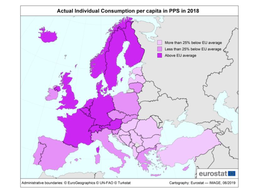 I più ricchi? I lussemburghesi. In fondo alla classifica Ue? I bulgari. Almeno stando al Prodotto interno lordo pro capite misurato da Eurostat. L’istituto statistico europeo ha diffuso oggi i dati del Pil per abitante e quelli relativi al “Consumo individuale effettivo”, ovvero un indicatore del livello di benessere materiale delle famiglie. In entrambe le classifiche il Lussemburgo si piazza al primo posto e, nell’Ue, la Bulgaria è ultima. Venendo al Pil pro capite, fatto 100 quello medio dei 28 Paesi Ue, il Lussemburgo è a quota 254; in seconda posizione, ma fortemente distaccata, l’Irlanda (187), poi i Paesi Bassi (129) e, a ruota, Austria, Danimarca, Germania (123), Svezia. Sopra la media Ue anche Belgio, Finlandia, Regno Unito e Francia (questi due appaiati a 104). Primo Paese sotto la media comunitaria Malta (98), poi l’Italia (95). Tra gli ultimi Ungheria, Grecia, Croazia, Bulgaria (50). I Paesi candidati si collocano, per Pil pro capite, sotto il 50. Circa l’indice del Consumo individuale effettivo (espresso in standard di potere d’acquisto) si va(vedi infografica) da 132 del Lussemburgo ai 56 della Bulgaria; Germania 121, Francia 107, Italia 98, Spagna 90, Polonia 77, Grecia 76.