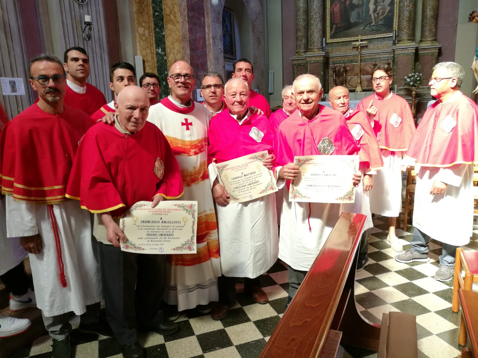 Alla Santa Messa del mattino la Confraternita del Santissimo Sacramento ha voluto onorare e omaggiare con una pergamena, segno di infinito riconoscimento per l’impegno profuso nel tempo all’interno della Confraternita e per la fede dimostrata, a tre membri ottantenni: Gabriele, Francesco e Giulio.