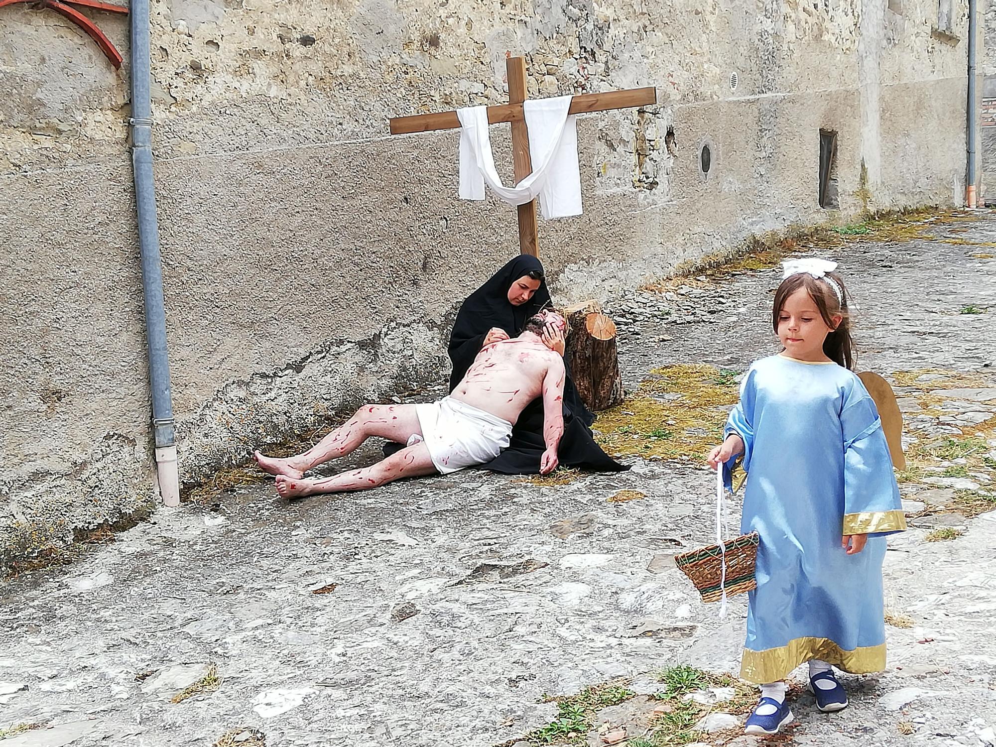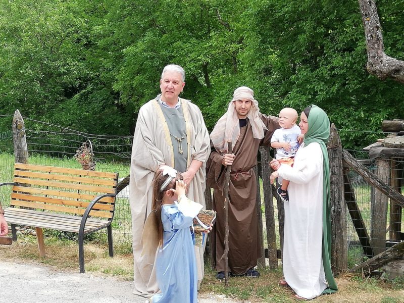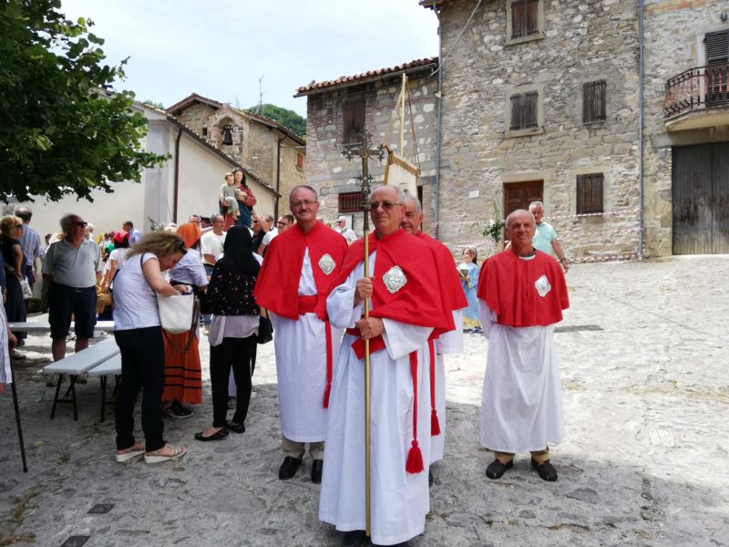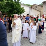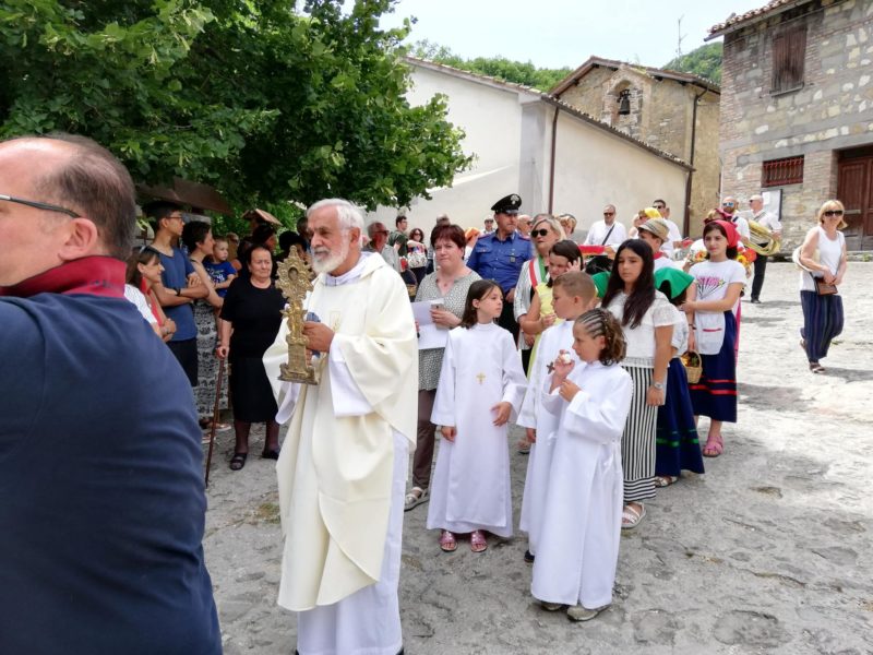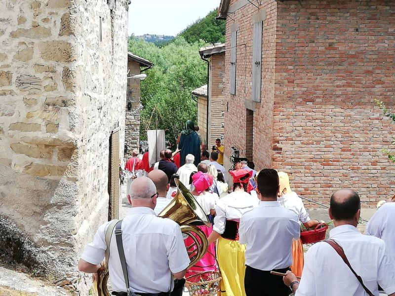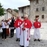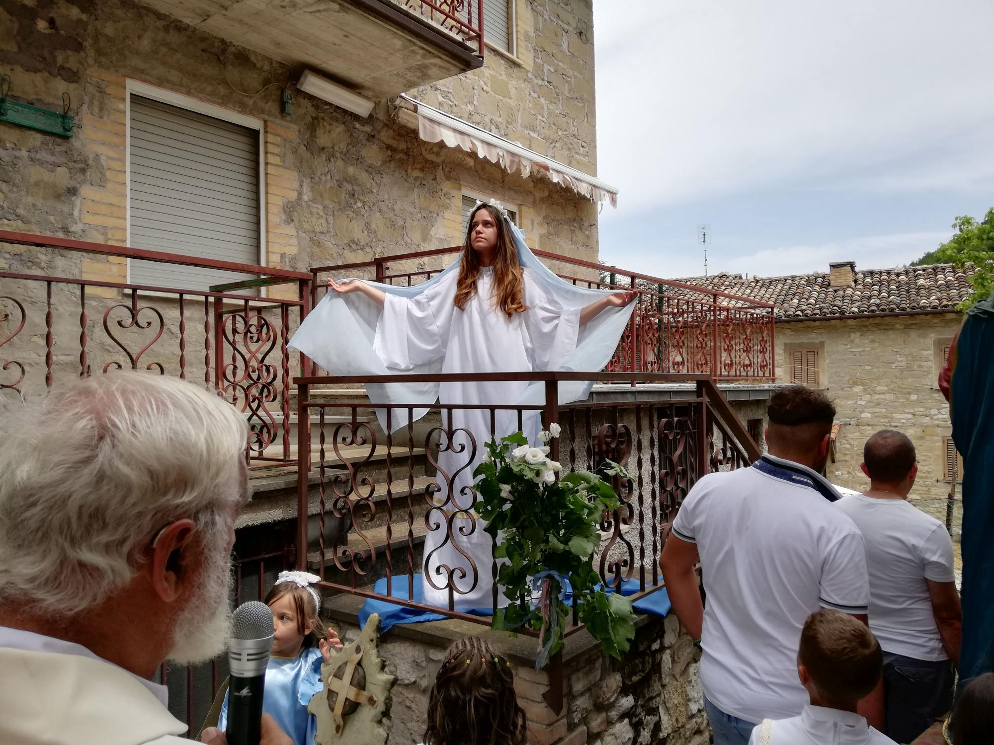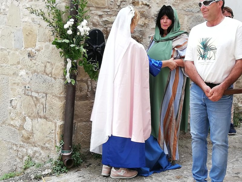 Le manifestazioni in onore della Madonna delle Grazie hanno avuto inizio con la Santa Messa delle ore 11.00 celebrata da padre Maurizio Fioravanti, missionario del Pontificio Istituto Missioni Estere (PIME) nella Guinea-Bissau e originario di queste zone e più precisamente di Rivo Rosso, una frazione di Montemonaco vicina a Vallegrascia (di cui riportiamo di seguito l’omelia) ed è proseguita con la processione delle canestrelle (donne vestite in abito tradizionale che portano dei cesti da lavoro) e dei quadri viventi raffiguranti scene della vita di Maria e di Gesù: l’Annunciazione, la Visitazione, la Natività, la Presentazione di Gesù al Tempio, le Nozze di Cana, la Via Crucis, la Deposizione e l’Assunzione di Maria in Cielo.