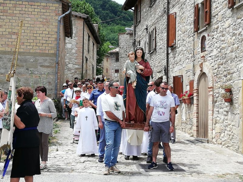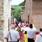 MONTEMONACO – Le conseguenze del terremoto che ancora continuano a farsi sentire non hanno impedito a un popolo attaccato alle proprie tradizioni di onorare la Madonna delle Grazie lo scorso 7 luglio a Vallegrascia (frazione di Montemonaco). Guardando le foto della processione – delle quali ringraziamo la signora Sabrina Zunica che le ha scattate – vengono in mente le parole di Gustav Mahler: «Tradizione è custodire il fuoco, non adorare le ceneri».
