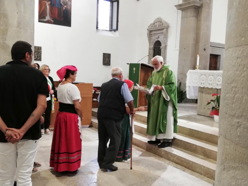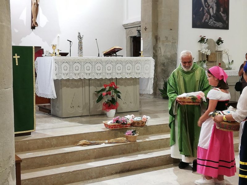 Durante l’offertorio delle giovani, vestite con abiti tradizionali, hanno portato processionalmente verso l’altare dei fiori e i prodotti tipici del territorio.
