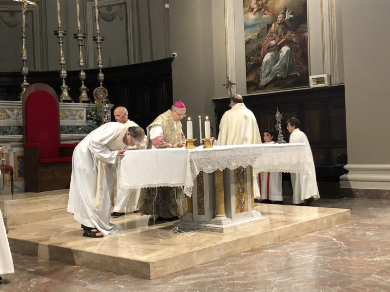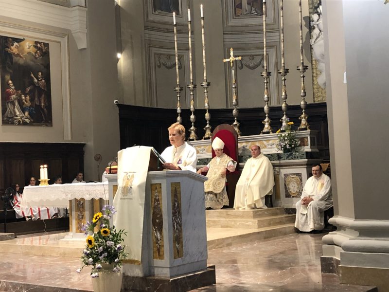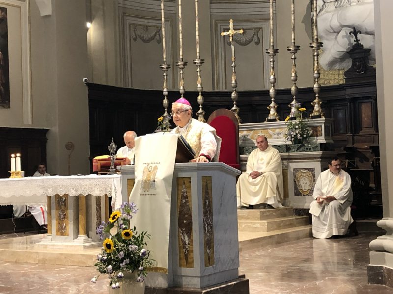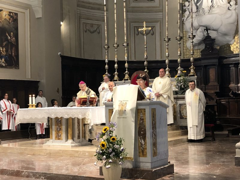 Durante l’omelia, il Vescovo Carlo, ispirandosi alle letture appena proclamate, ha affermato: « Se uno è in Cristo è una creatura nuova, dice San Paolo. Ma cosa significa questo? Ci può aiutare a rispondere a questa domanda la figura della Maddalena. Se andiamo a vedere nel Vangelo vediamo che è una donna che Gesù ha guarito da un’infermità. Lei è una dei tanti miracolati da Gesù. Ma non sta qui l’essere nuova creatura. Un primo elemento che ci mostra la Maddalena come nuova creatura è che lei seguiva Gesù. Dunque Maria Maddalena non solo usufruisce del beneficio recatole dalla guarigione operata da Cristo, ma conserva un ricordo e una gratitudine per quello che ha ricevuto. Come cristiani siamo chiamati a seguirla per diventare anche noi come lei nuove creature. Un secondo elemento questa donna ha affetto per Gesù. A Maria di Magdala è attribuito anche il fatto di aver unto i piedi di Gesù. Secondo alcuni presenti questo è stato uno spreco, ma quando si vuole bene i criteri che si adottano sono diversi da quelli meramente contabili ed economici. Un terzo aspetto è che lei non ha abbandonato Gesù e stava ai piedi della croce, con impotenza certo, ma con attaccamento al Signore nonostante le circostanze avverse. E la sua fedeltà e, questo è l’ultimo aspetto, è premiata da Gesù che la fa diventare la prima testimone della resurrezione: è lei che addirittura dà agli apostoli l’annuncio di questo fatto straordinario».