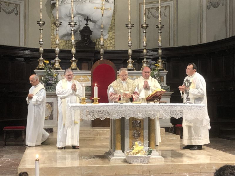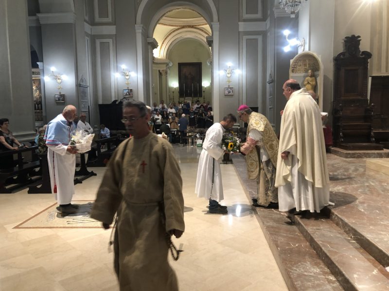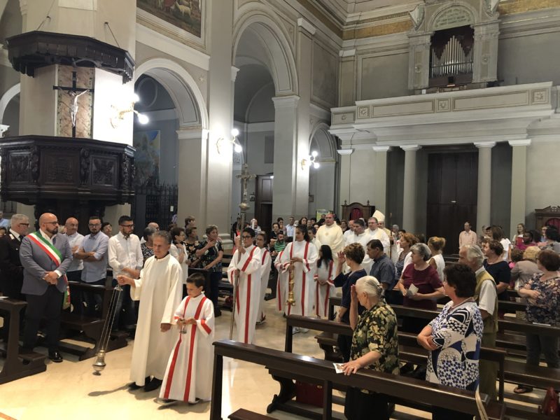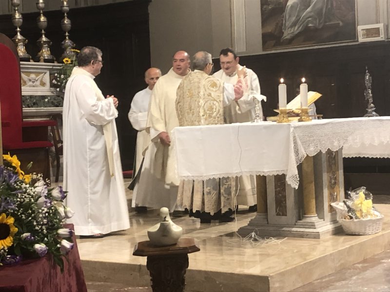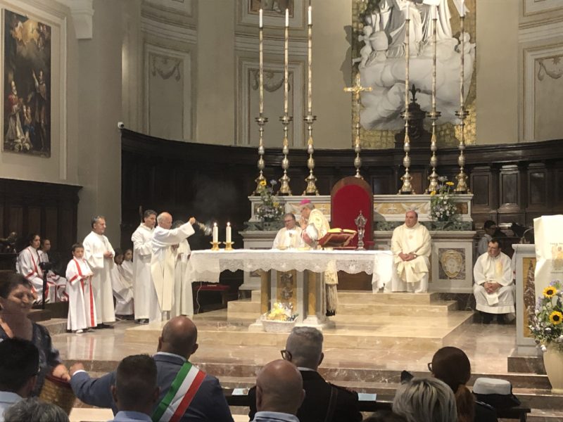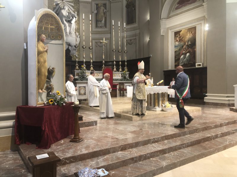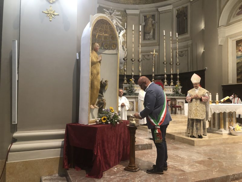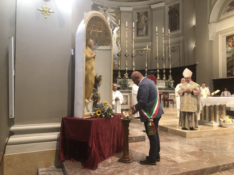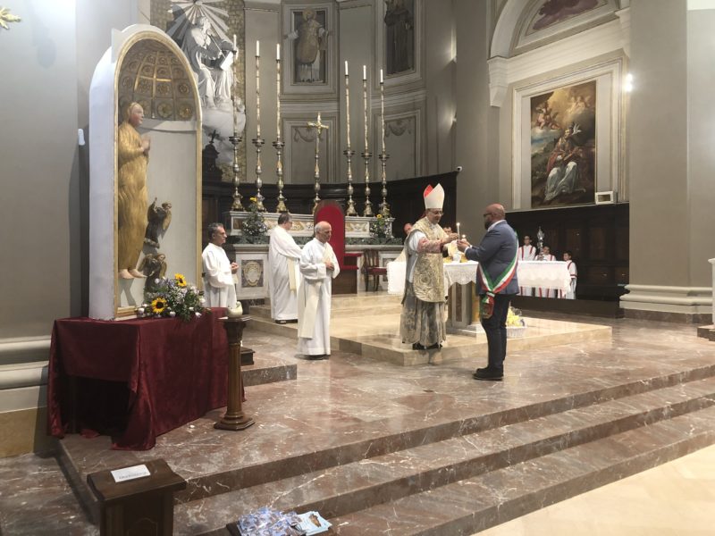 Durante l’offertorio i membri delle confraternite hanno portato fra l’altro un mazzo di fiori e una lampada votiva che alla fine della celebrazione è stata accesa, come da tradizione, dal Primo Cittadino.