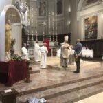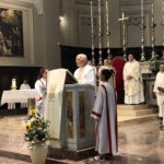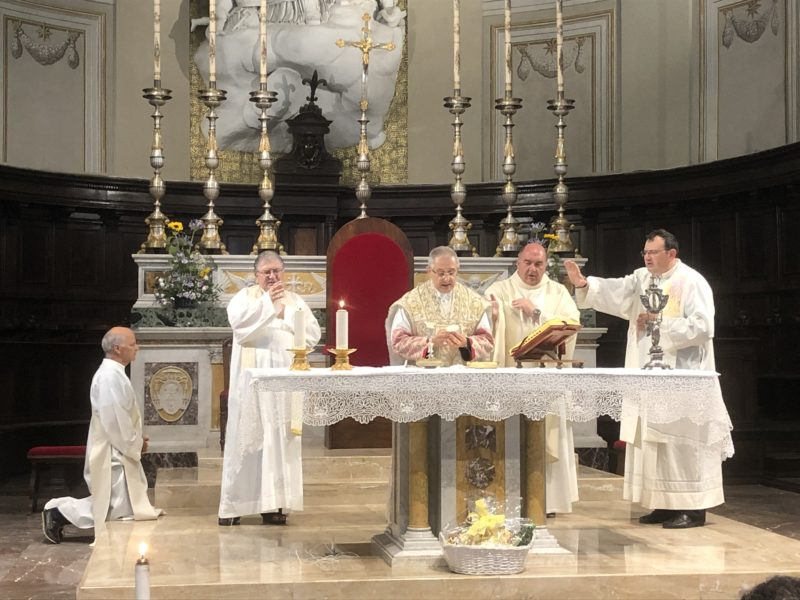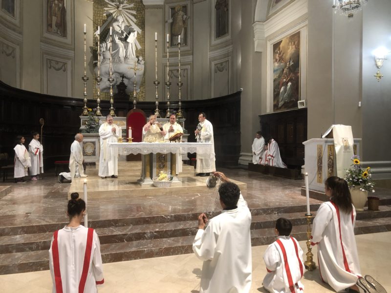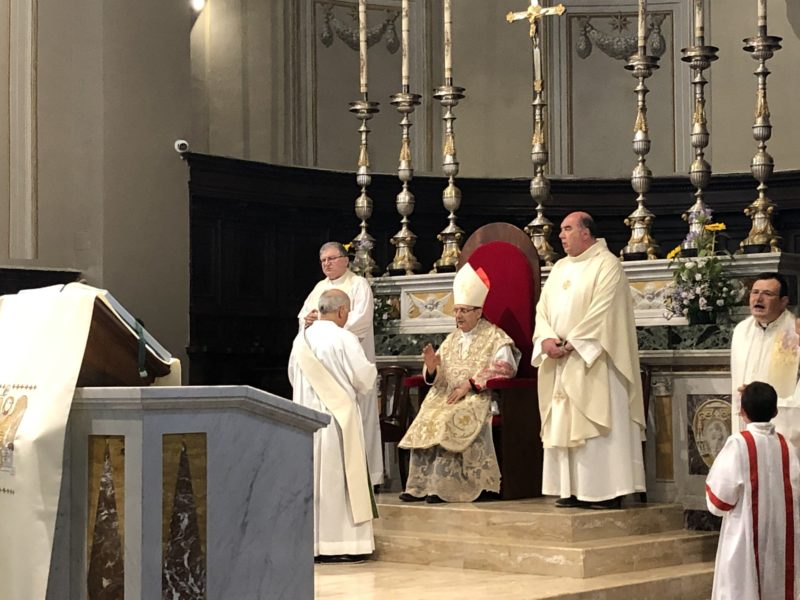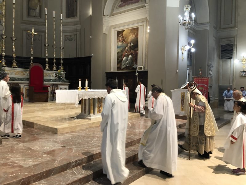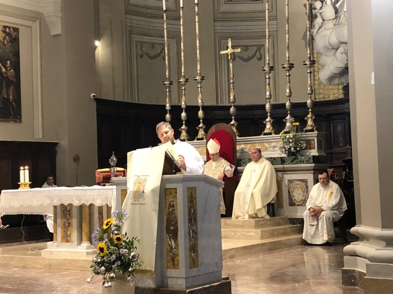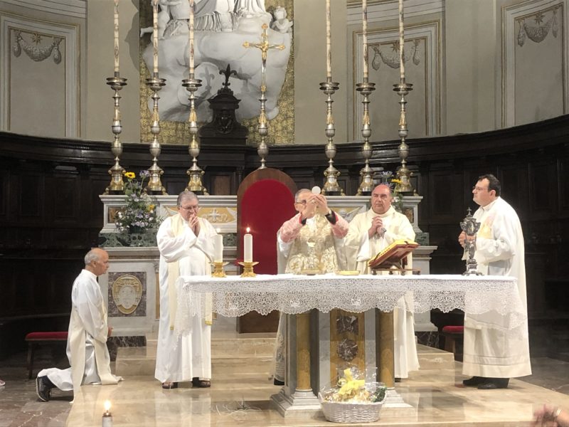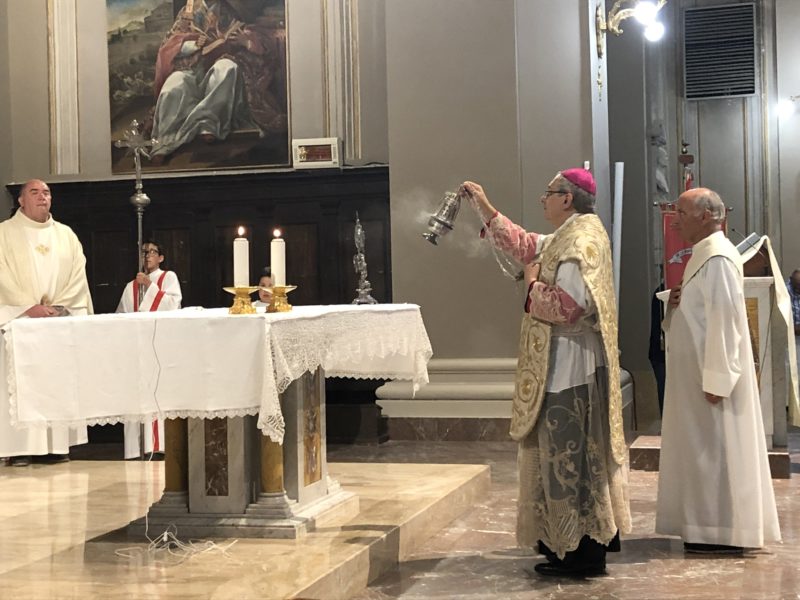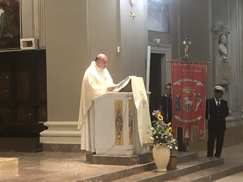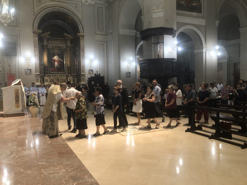 Durante l’offertorio i membri delle confraternite hanno portato fra l’altro un mazzo di fiori e una lampada votiva che alla fine della celebrazione è stata accesa, come da tradizione, dal Primo Cittadino.