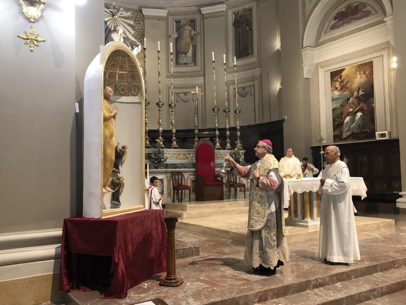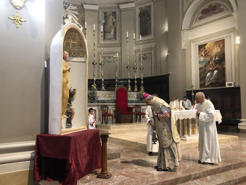 RIPATRANSONE – Con una solenne celebrazione nella concattedrale si è conclusa dopo una settimana ricca di appuntamenti la festa in onore di Santa Maria Maddalena, patrona della Città. Il sacro rito è stato presieduto dal Vescovo Carlo Bresciani e concelebrato dal parroco del duomo don Nicola Spinozzi, dal neo parroco di Castignano don Tommaso Capriotti, mentre ha assistito la funzione il diacono permanente Walter Gandolfi. Hanno preso parte il Sindaco Alessandro Lucciarini e altre autorità.