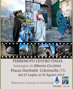 Alberto Cicchini nasce a San Benedetto del Tronto il 2 luglio 1968. Sin dall’età di dieci anni nutre una grande passione per la fotografia analogica. Nel 1996 prende forma il suo cammino nella fotografia, e nel 2004, affascinato dal mondo del fotogiornalismo sportivo, inizia come praticante, collabora con l’agenzia “Toto Press” di Montecatini Terme e nel 2007 diventa pubblicista, lavora con “Il Messaggero” e varie agenzie di stampa con cui decolla la sua carriera che con gli anni si arricchisce di molti riconoscimenti internazionali, perché è la sua passione che viene trasmessa dalle sue foto. Nel 2009 segue da vicino, e sin dalle prime ore, la tragedia del terremoto de L’Aquila. Partecipa con l’associazione SAVE L’AQUILA PROJECT no-profit alla realizzazione di due mostre di beneficenza con 25 fotografi internazionali e agenzie di stampa: il 3 ottobre 2009 Los Angeles Santa Monica Jeanie Madsen Gallery e il 20 maggio 2010 Ambasciata Italiana a Washington. È stato premiato con la sua storyboard che sarà in mostra a Colonnella “Earthquake in Center Italy” in vari concorsi internazionali importanti con giurati di spicco: Londra , Parigi, Tokyo, Italia, Los Angeles, Russia. Un buon motivo per visitare questa mostra ormai famosa in tutto il mondo.