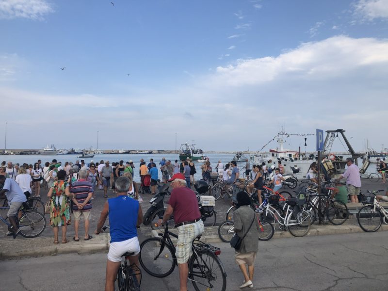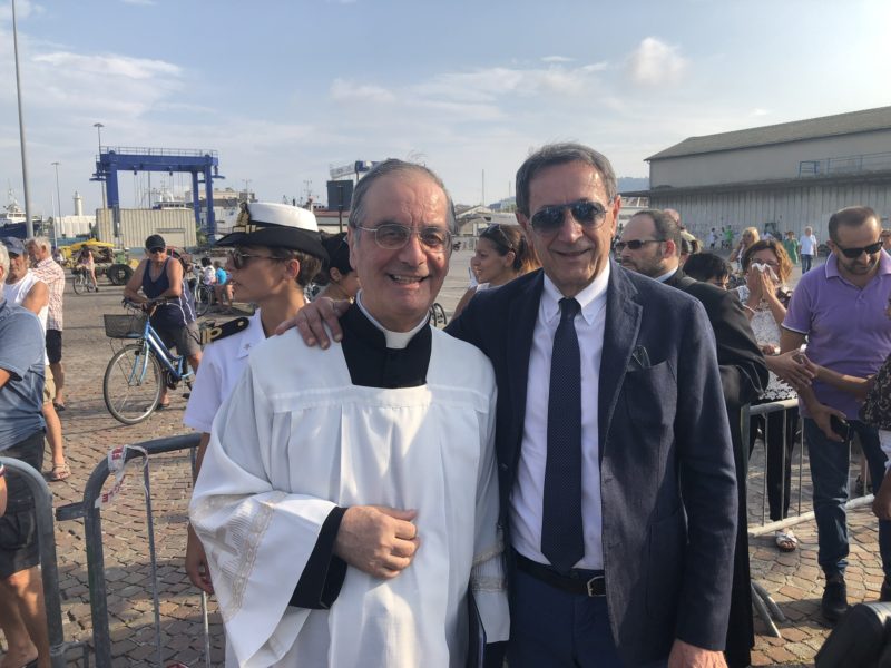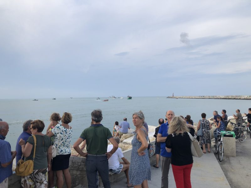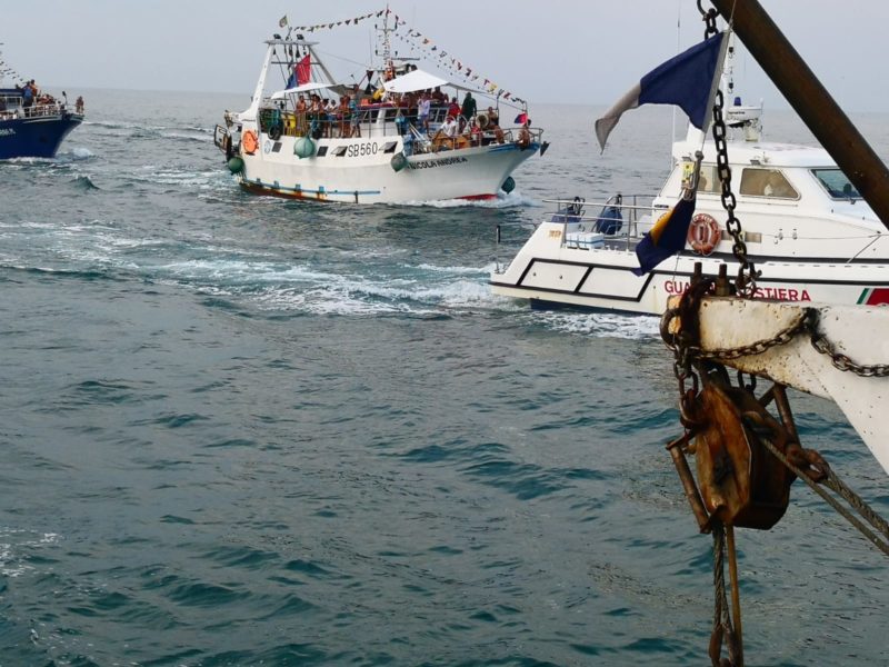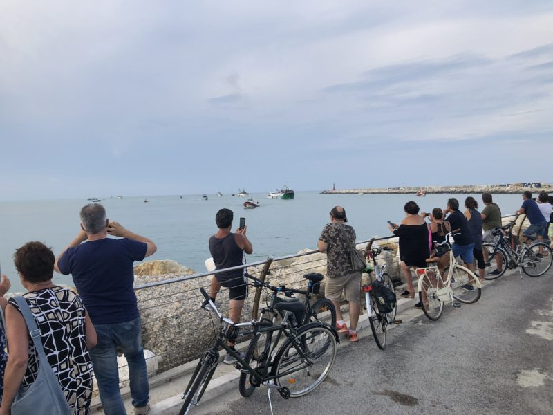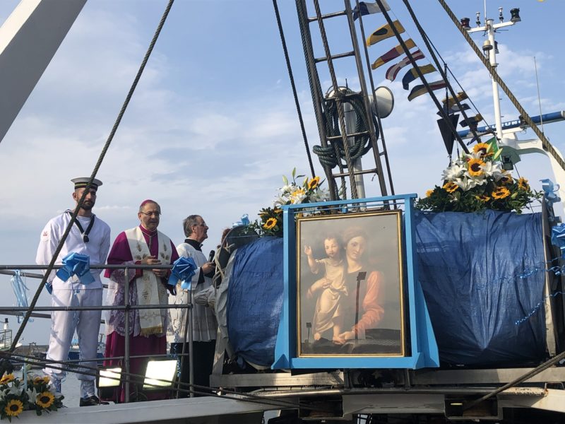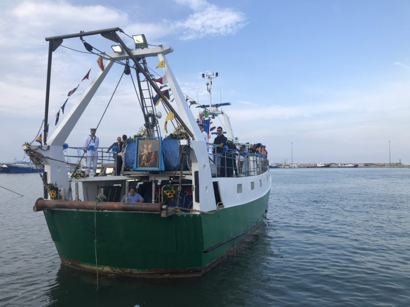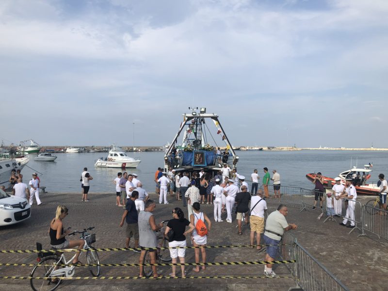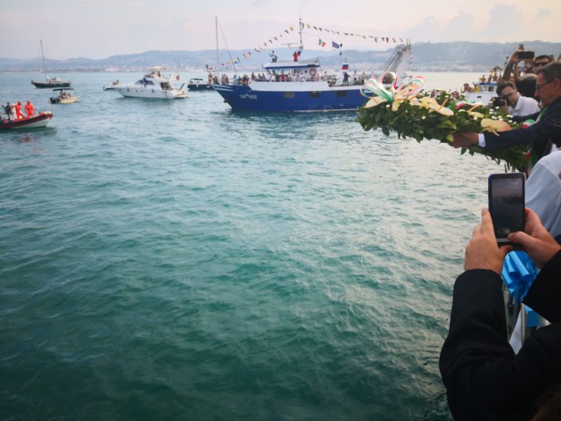 Come da tradizione, una corona d’alloro è stata gettata in mare nello specchio d’acqua davanti al porto e in quello davanti alla chiesa di San Francesco da Paola, in ricordo di quanti, per svolgere il loro civico dovere o per sostenere le proprie famiglie, hanno perso la vita in mare (si ringrazia don Guido Coccia, Parroco di San Benedetto Martire, per le foto scattate sul Marcantonio II durante la processione in mare). Il gesto è stato salutato dal suono festante di tutte le imbarcazioni che si sono unite al particolare corteo religioso.