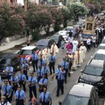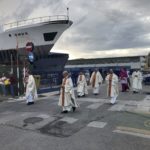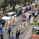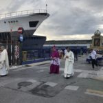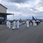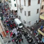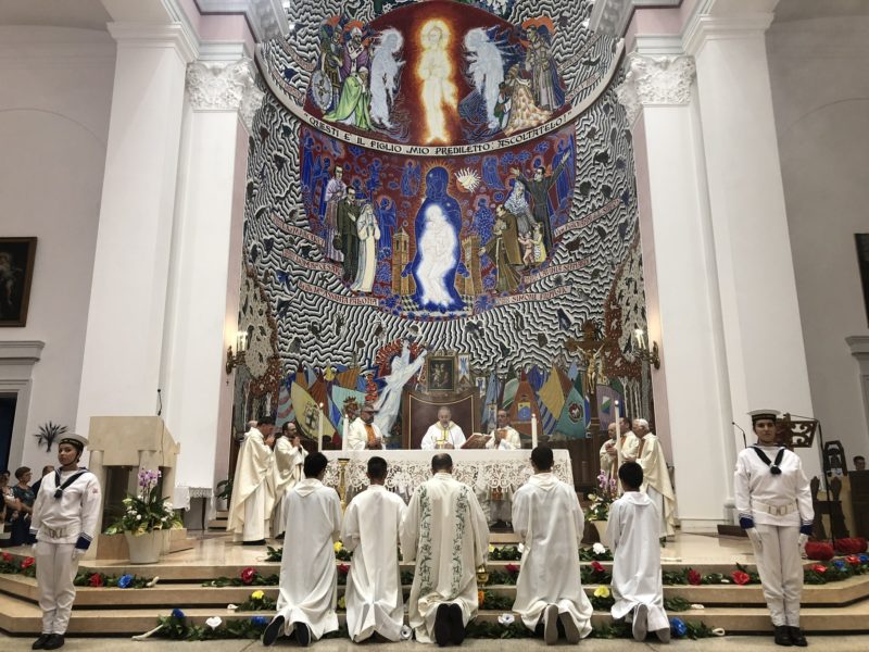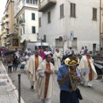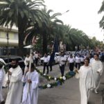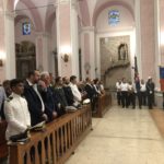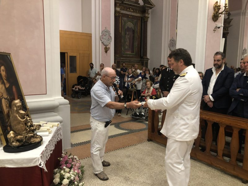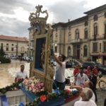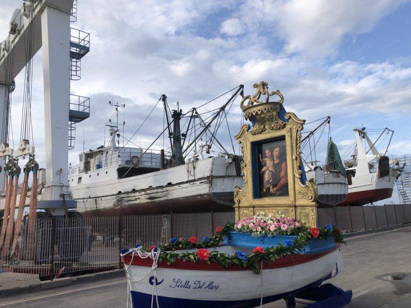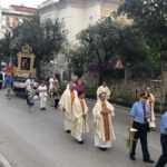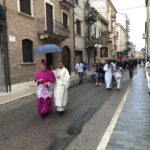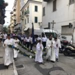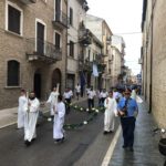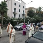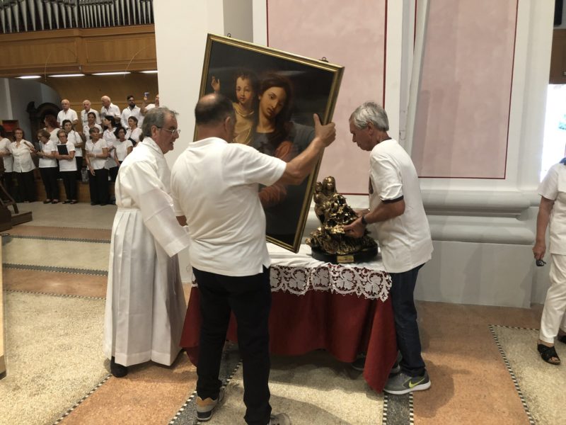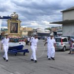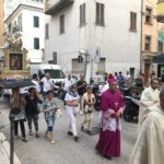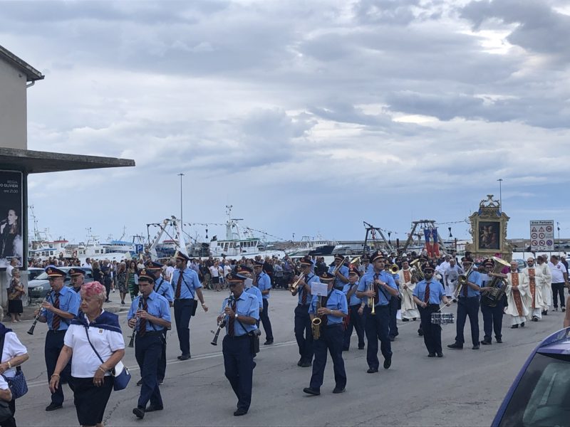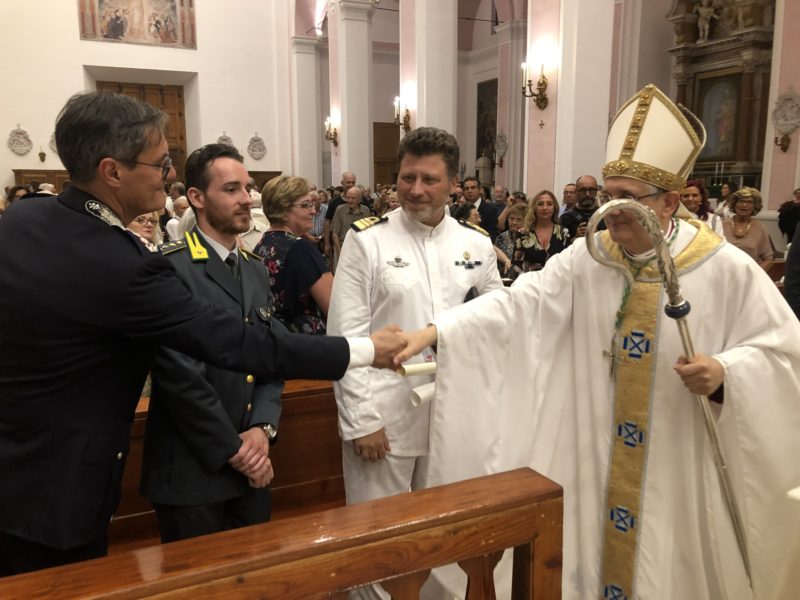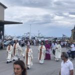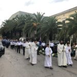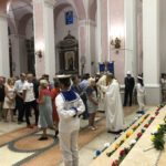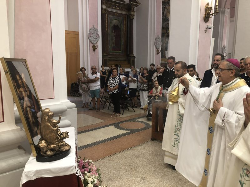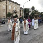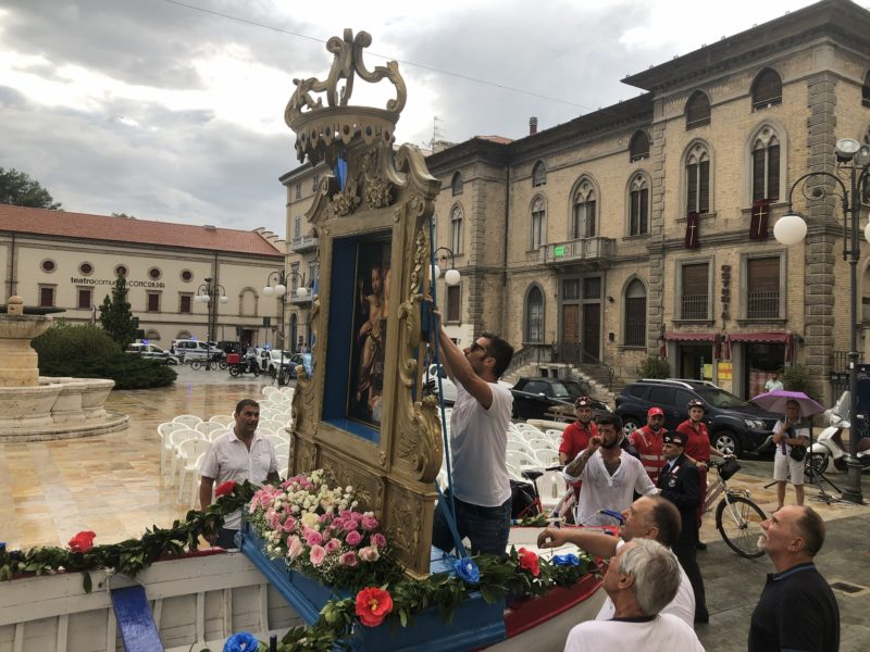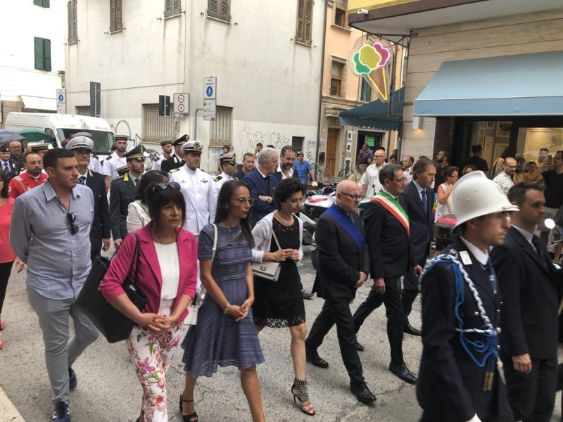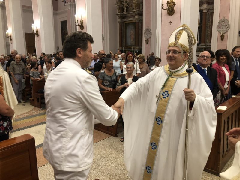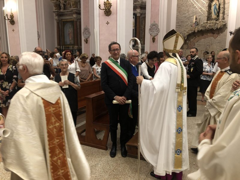 SAN BENEDETTO DEL TRONTO – Domenica 28 luglio con la solenne processione verso la Basilica Cattedrale e la Santa Messa presieduta dal vescovo Carlo Bresciani si è conclusa la festa in onore della Madonna della Marina, Stella del Mare. Il corteo religioso è stato accompagnato dalla Banda Musicale di San Benedetto del Tronto che ha intervallato la recita dei misteri del rosario con brani mariani. Tanti i fedeli, i turisti e i curiosi che si sono fermati lungo le vie Faliero, Colombo, Fiscaletti, Gramsci, Galilei, San Martino e Pizzi al passaggio della venerata immagine della Madonna della Marina, trasportata su uno scafo. A guastare la festa, solo in minima parte per la verità, è stato un modesto rovescio d’acqua che si è riversato sui fedeli e che è iniziato mentre il sacro corteo stava percorrendo via San Martino. Per tale motivo la Santa Messa non è stata celebrata sul sagrato come previsto, ma all’interno della chiesa. Una volta giunti in Cattedrale, ha avuto appunto inizio la Santa Messa, alla quale ha partecipato un gran numero di fedeli, insieme alle autorità civili e militari.