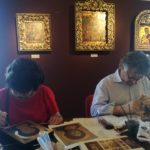 Questa rara collezione mostra svariate opere, come icone con cornici di legno intagliate e dorate; si possono inoltre ammirare le icone rivestite dalle “rize”, rivestimenti metallici che lasciano scoperte parti essenziali dell’icona e completate con tecniche orafe e icone “menologiche”, cioè veri e propri calendari divisi per mese, raffiguranti i Santi di ogni giorno dell’anno.. Il corso è stato tenuto dall’insegnante polacca, Aleksandra Michalska diplomata all’Accademia di Sofia (Bulgaria) in storia e restauro icone con studi post laurea in storia e arte polacca con dottorato in iconografia. Il limite di 12 persone, ha permesso ad Aleksandra di seguire personalmente i corsisti che hanno approcciato intellettualmente e praticamente a questo mondo. Mentre teoricamente i partecipanti ne hanno appreso il significato, il simbolismo contenuto, l’importanza del mistero della presenza che l’Icona dona agli occhi di chi la contempla, praticamente ognuno di loro ha realizzato il proprio lavoro che si è portato a casa.