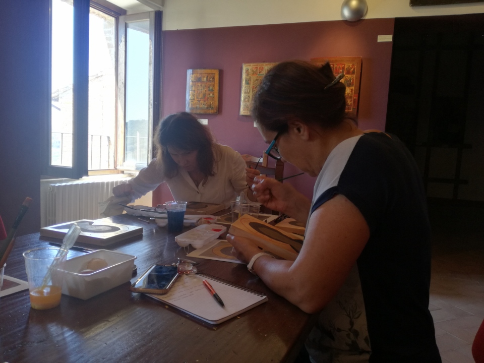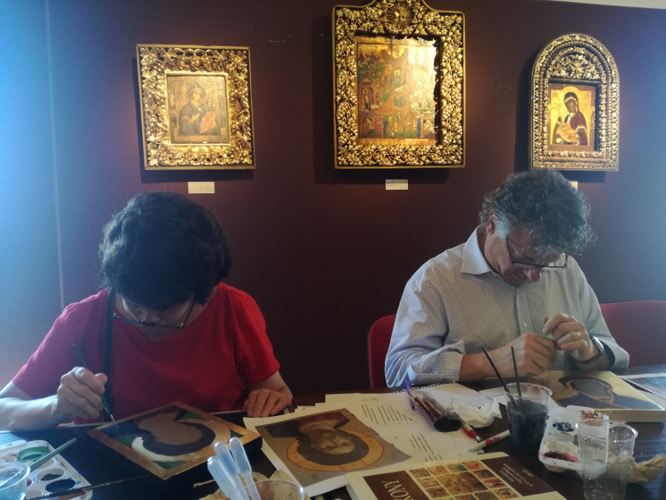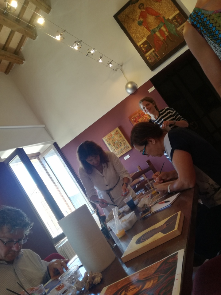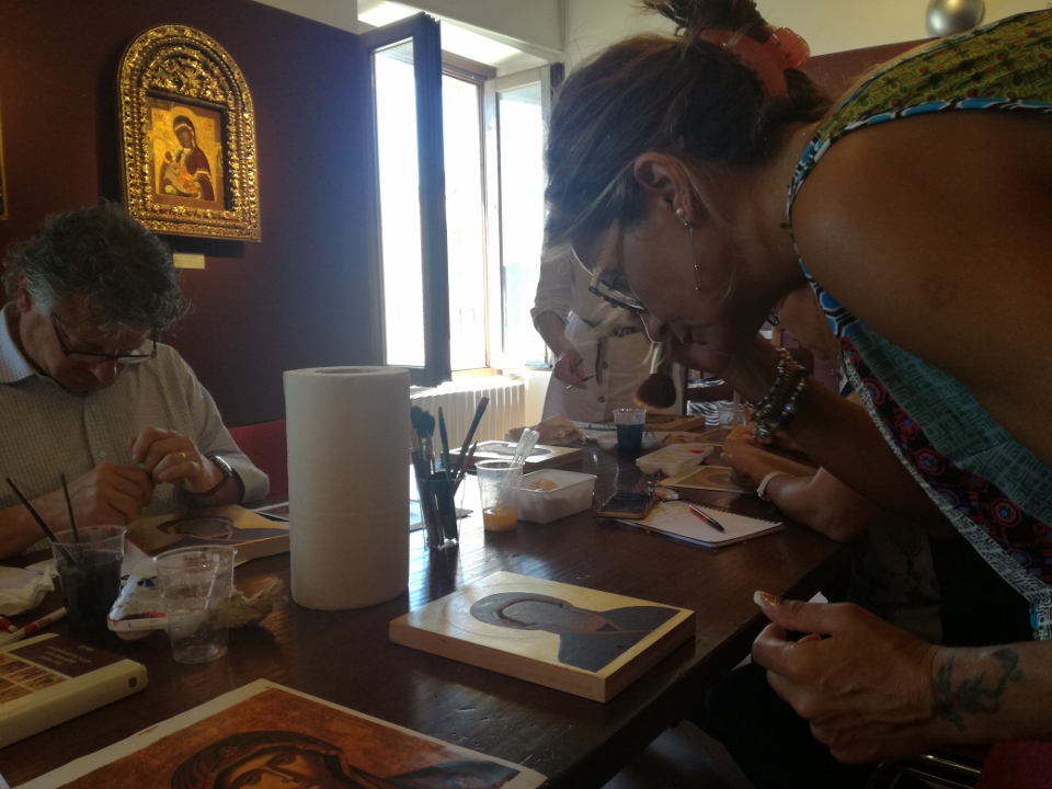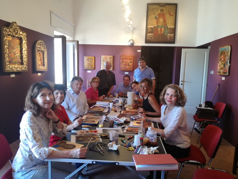 Questa rara collezione mostra svariate opere, come icone con cornici di legno intagliate e dorate; si possono inoltre ammirare le icone rivestite dalle “rize”, rivestimenti metallici che lasciano scoperte parti essenziali dell’icona e completate con tecniche orafe e icone “menologiche”, cioè veri e propri calendari divisi per mese, raffiguranti i Santi di ogni giorno dell’anno.. Il corso è stato tenuto dall’insegnante polacca, Aleksandra Michalska diplomata all’Accademia di Sofia (Bulgaria) in storia e restauro icone con studi post laurea in storia e arte polacca con dottorato in iconografia. Il limite di 12 persone, ha permesso ad Aleksandra di seguire personalmente i corsisti che hanno approcciato intellettualmente e praticamente a questo mondo. Mentre teoricamente i partecipanti ne hanno appreso il significato, il simbolismo contenuto, l’importanza del mistero della presenza che l’Icona dona agli occhi di chi la contempla, praticamente ognuno di loro ha realizzato il proprio lavoro che si è portato a casa.