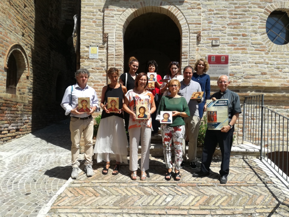 CASTIGNANO – Nella cornice del comune di Castignano (AP), paese posto alle pendiici del Monte dell’Ascensione su di un alto crinale, si è tenuto dal 22 al 26 Luglio, Il primo corso di iconografia. Questa originale iniziativa è nata spontaneamente grazie all’incontro fra Monsignor Don Vincenzo Catani e l’esperta di Iconografia, Agnieszka Rozycka, di origine polacca residente da qualche anno nel Piceno. E’ da sottolineare che questo paese vanta il Polo Museale di Arte Sacra e Icone più importante delle Marche, poiché espone 120 icone originali Russe, Ortodosse, dell’ Ucraina, della Romania, dell’ Ungheria, un materiale di enorme ricchezza collezionato da Don Vincenzo Catani e donato a Castignano, suo paese di origine.
