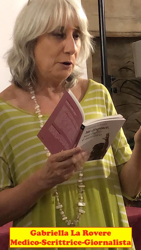 – Gabriella della Rovere, medico, scrittrice e giornalista. Collabora con Gianluca Nicoletti nel sito “Per noi autistici”. Questo pomeriggio ha anche presentato il suo libro “MI DISPIACE, SUO FIGLIO E’ AUTISTICO” riferendo in esso la complessa e durissima esperienza personale.