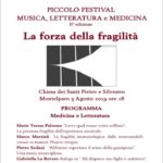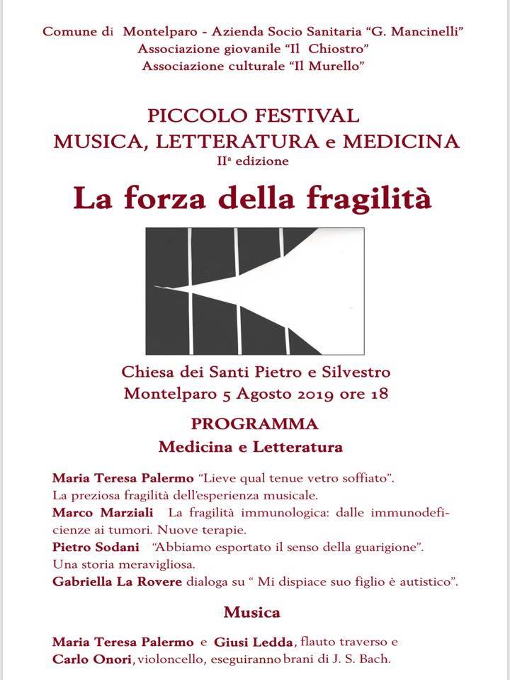 Abbiamo riunito ancora una volta, in questa edizione, medici, musicisti e scrittori pronti a condividere la propria esperienza per indagare il tema della fragilità, nella sua valenza positiva, come possibilità di riconoscere i limiti della nostra umanità e la spinta della nostra anima verso la bellezza. Fragilità come capacità di riconoscere le emozioni, di ‘sentire se stessi’, di accogliere, per costruire strumenti che allontanino le paure legate intrinsecamente alla precarietà della vita.”