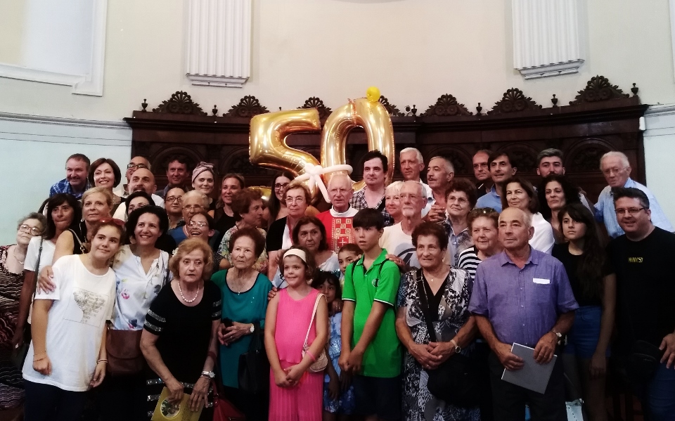 Don Tiziano ha letto il messaggio di auguri che Sua Santità Papa Francesco ha inviato a don Vincenzo Catani in occasione del suo cinquantesimo anniversario sacerdotale. Don Vincenzo ha poi posato un mazzo di fiori davanti la statua della Madonna.