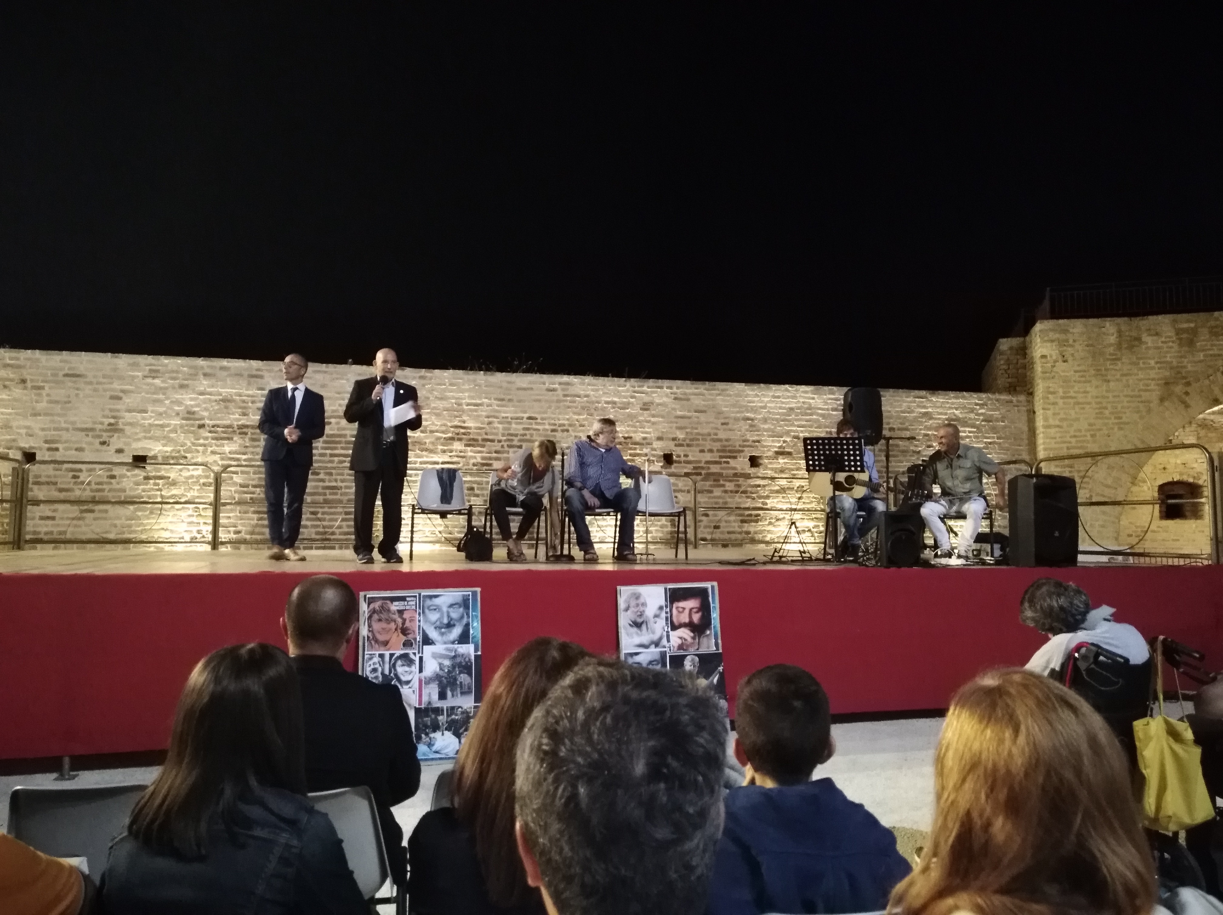 Il sindaco di Acquaviva Rosetti ha detto: “Saluto Francesco Guccini e lo ringrazio per aver accettato l’invito a venire ad Acquaviva, io a nome di tutta l’amministrazione comunale e di tutta la cittadinanza le do il benvenuto.