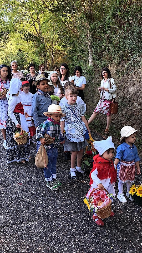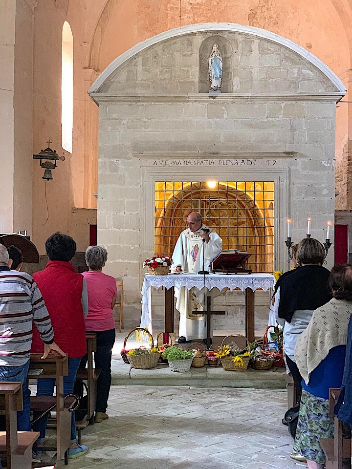 Nella mattinata di domenica, poi, c’è stata la consueta sfilata delle “canestrelle” colme di offerte di prodotti della campagna e di tanti fiori. I molti bambini, vestiti con costumi tipici, hanno dato un calore particolare alla festa. Il Priore li ha accolti e li ha condotti, in una processione rallegrata dal suono d’organetto, all’interno del Santuario già gremito di fedeli.