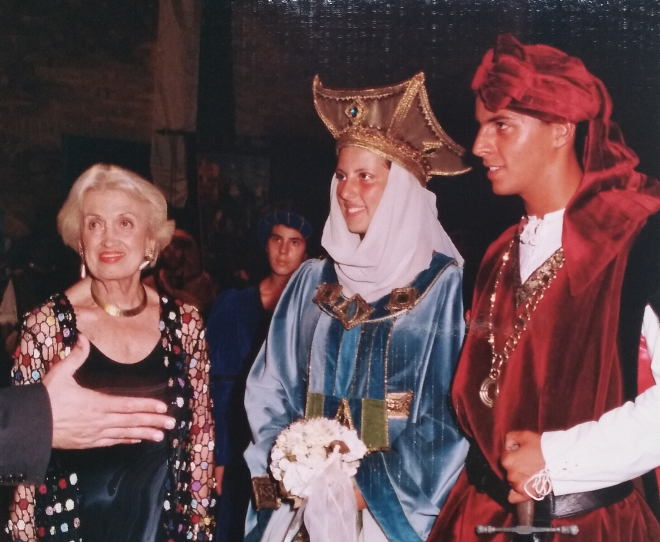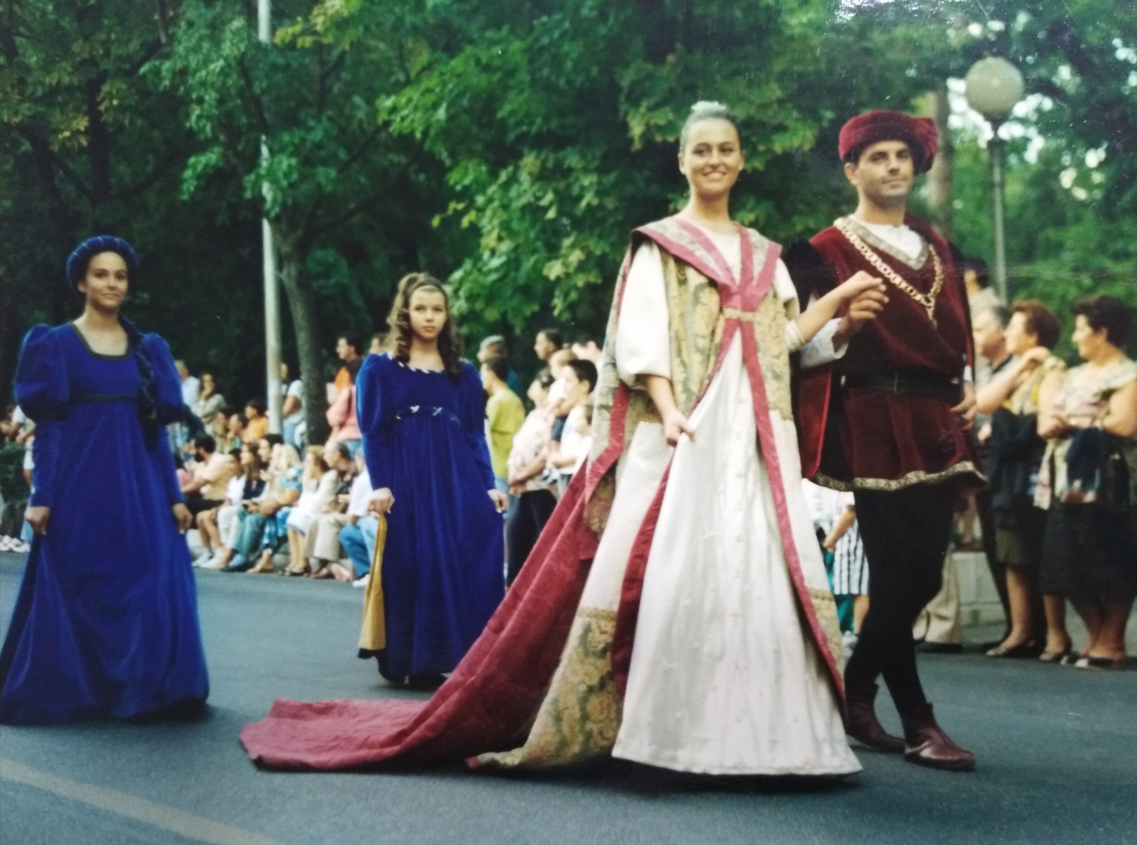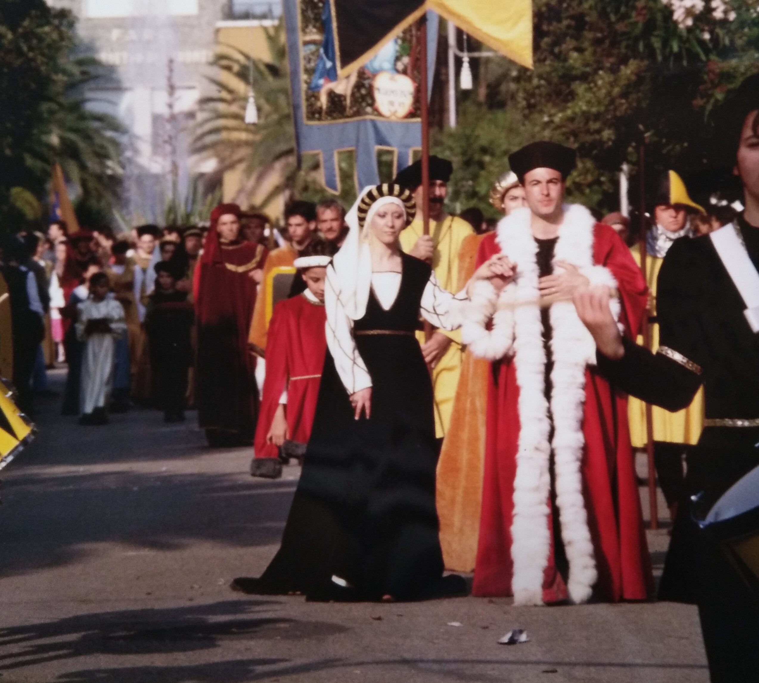 Ci occupammo di cucire gli abiti dei nobili, ma anche della gente del popolo. Le sfilate sempre più grandiose a cui partecipavano anche animali domestici, così da rendere più veritiera la vita quotidiana medievale. Credo che in qualche modo tutte le famiglie acquavivane hanno preso parte alla realizzazione di quello che a quei tempi si chiamava Palio del Duca e che poi è divenuto Sponsalia. L’associazione prese il nome di Palio del Duca con un Atto Ufficiale stipulato l’11 maggio 1993. Ogni volta che sfoglio gli album fotografici vengo assalito da forti emozioni, ripensando soprattutto a tutti gli amici che non ci sono più e che sicuramente dall’alto ci staranno guardando. Con l’aiuto di tutti era nata una delle più grandi manifestazioni di Acquaviva e che poi ha reso il nome del paese grande in Europa e nel mondo. Abbiamo viaggiato tanto e preso parte a tante feste e parate, siamo stati in Grecia, a Strasburgo al Parlamento Europeo, al Quirinale, al Giubileo delle Rievocazioni Storiche e in tante altre città, siamo oramai una grande famiglia e come in tutte le famiglie non sono mancate incomprensioni e difficoltà, ciò nonostante la nostra tenacia ci ha portato fin qui. Ripeto che solo la collaborazione permette di raggiungere obiettivi importanti. Io sono membro del Consiglio Direttivo dell’Associazione Marchigiana delle Rievocazioni Storiche, in passato ero anche membro dell’Associazione Europea Rievocazioni Storiche. Sponsalia è arrivata a fare parte anche della Federazione Italiana Giochi Storici.