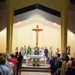 «Vedo con gioia che qui sono presenti tanti giovani – ha aggiunto il vescovo -. E’ molto bello, perché l’aspirazione della Chiesa è quella di diventare inclusiva di tutti. Prego, perché don Marco trovi la vostra corrispondenza, la vostra pronta collaborazione, perché il prete da solo non fa la comunità, ma la comunità è fatta dal sacerdote con tutti i fedeli che insieme si aiutano, cercano di capirsi all’interno delle loro diversità, ma sapendo che c’è qualcosa di molto più profondo che ci unisce. Ossia quest’unica Fede nella presenza del Signore Gesù dentro la nostra comunità. Ed è in questa presenza che il nostro cammino non guarda solo al passato, non si ferma al presente, ma con grande coraggio e fiducia va verso quel futuro che il Signore Gesù ci mostra, ci affida e rende fecondo per tutti noi».