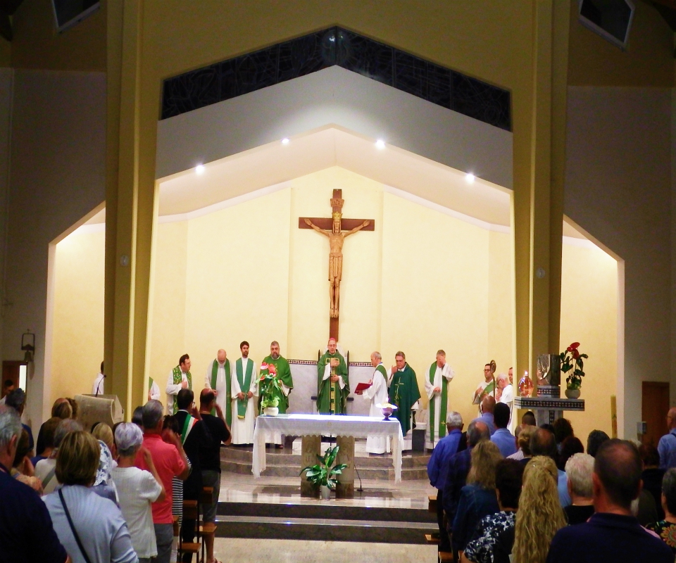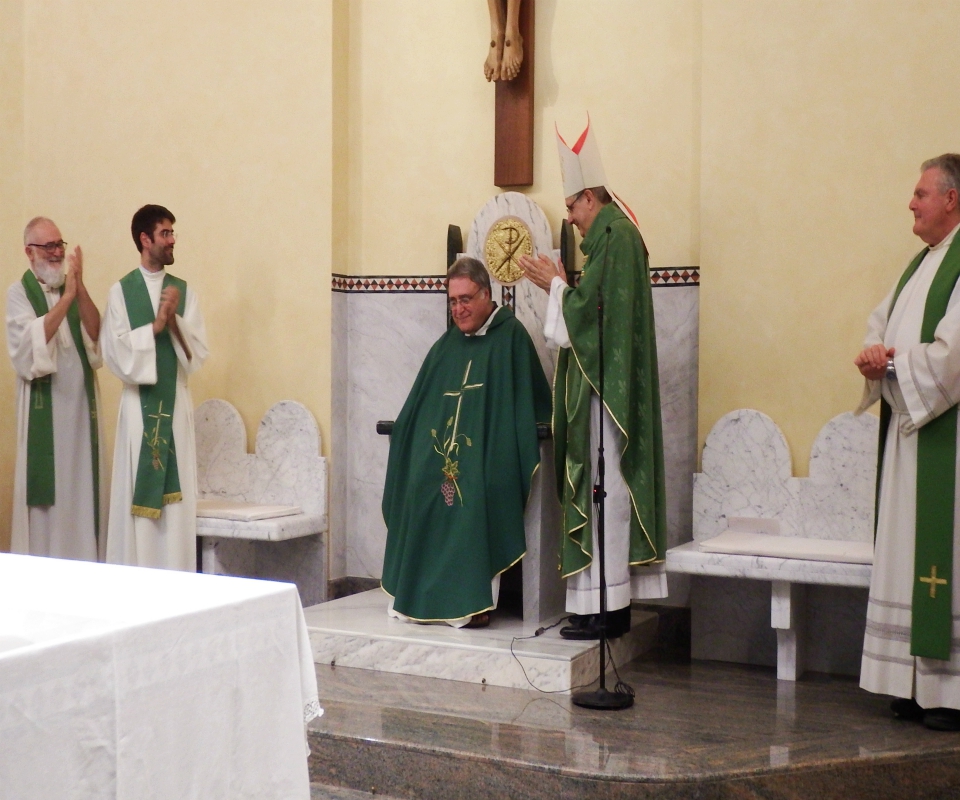 La celebrazione era presieduta dal vescovo, Carlo Bresciani: presente insieme al vicario, Don Patrizio Spina e ad altri sacerdoti. Nella sua omelia, il vescovo ha rimarcato la gratitudine sua e della comunità nei confronti di Don Vittorio  «che termina il suo servizio pastorale in questa parrocchia, dove ha speso tante energie, anche per la sistemazione della chiesa». Proseguendo, monsignor Bresciani ha augurato a Don Marco ed a tutti i suoi nuovi parrocchiani, che il loro cammino di fede diventi sempre più un cammino inclusivo di tutti.