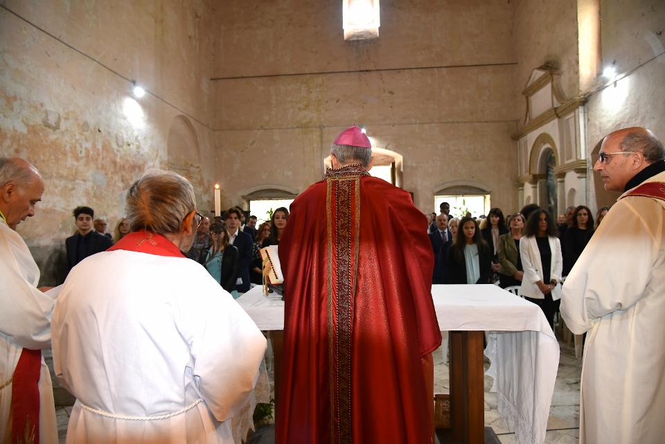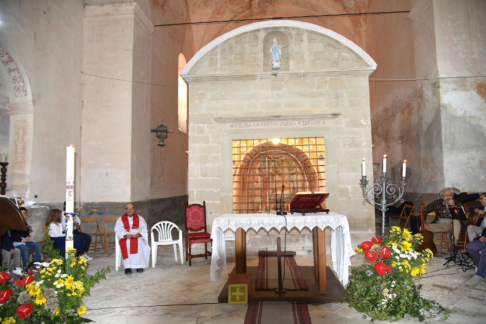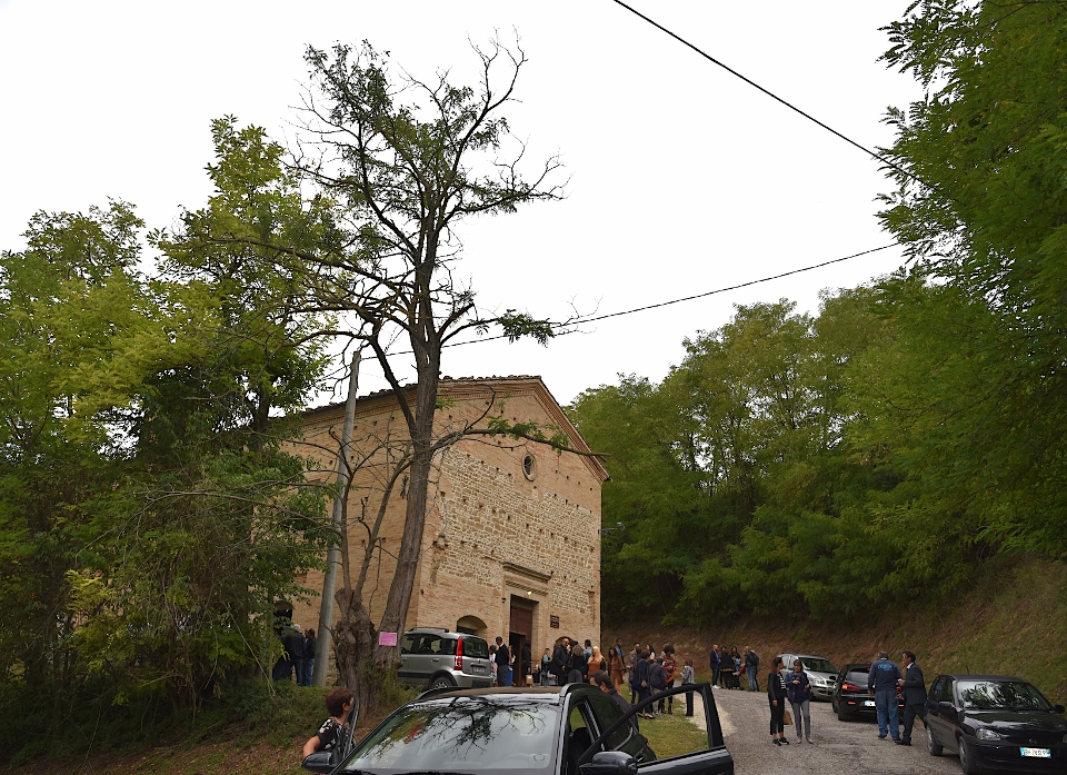 Il perdurare della chiusura di tutte le Chiese del Centro Storico a causa dei danni sismici e l’incapacità della Chiesa dei Ss. Pietro e Silvestro di contenere l’afflusso dei numerosi fedeli qui oggi convenuti, hanno fatto si che questo preziosissimo gioiello storico, sito nell’aperta campagna montelparese, potesse ospitare, appunto, una bellissima e importante cerimonia come questa.