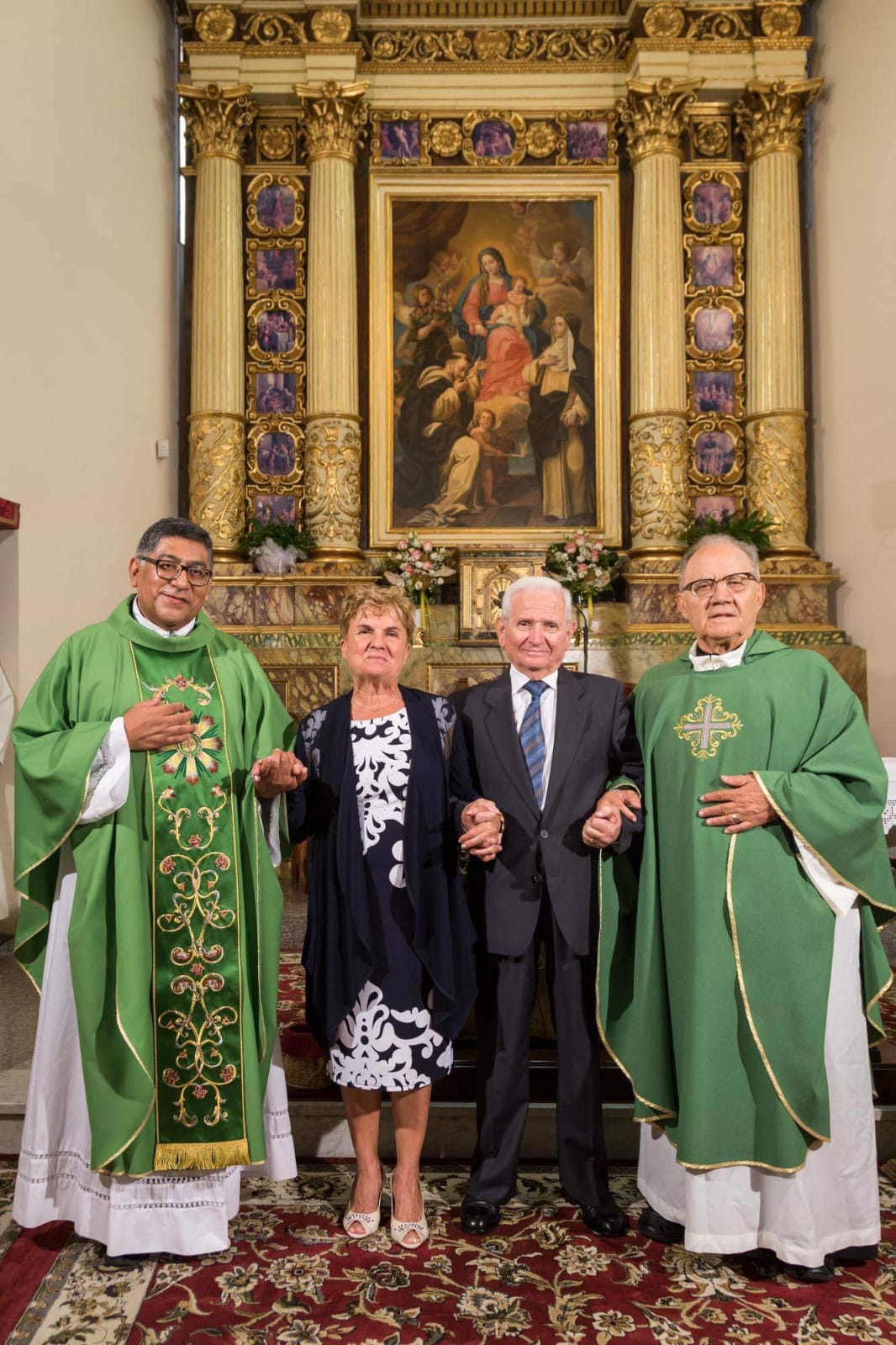 Le risposte poi sono arrivate subito all’inizio della Messa quando il Parroco Don Luis ha salutato gli sposi e i loro familiari ringraziandoli per essere tornati nella Parrocchia per festeggiare le loro Nozze d’oro dopo che avevano celebrato il loro matrimonio giusto 50 Anni prima.