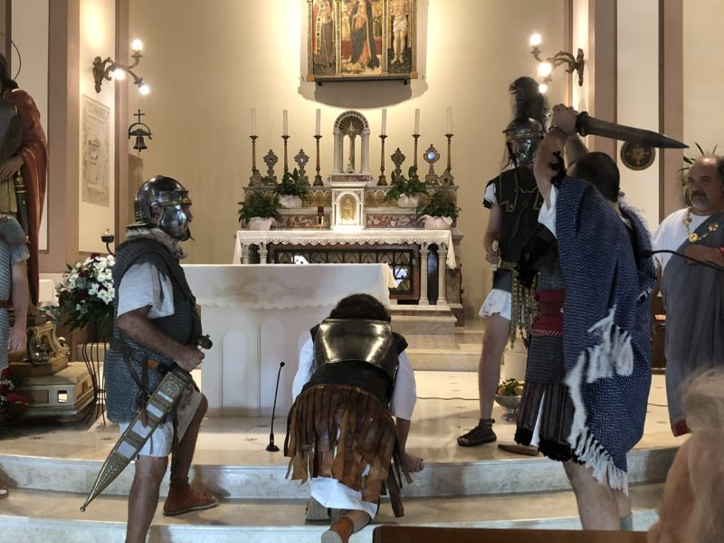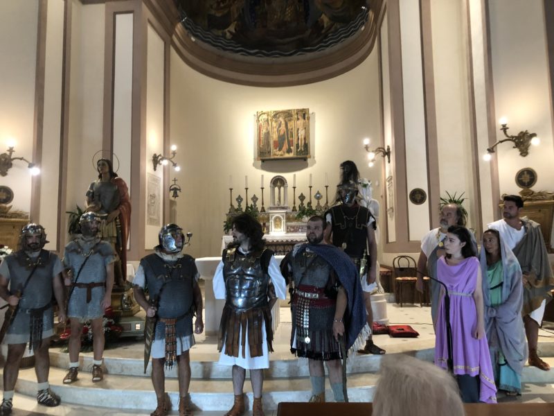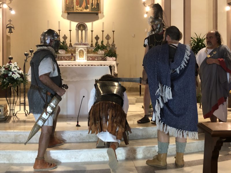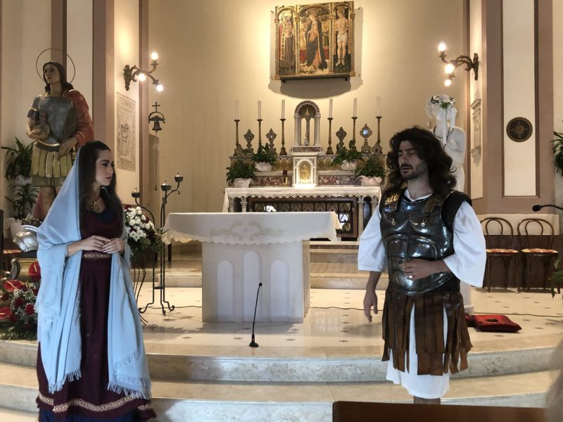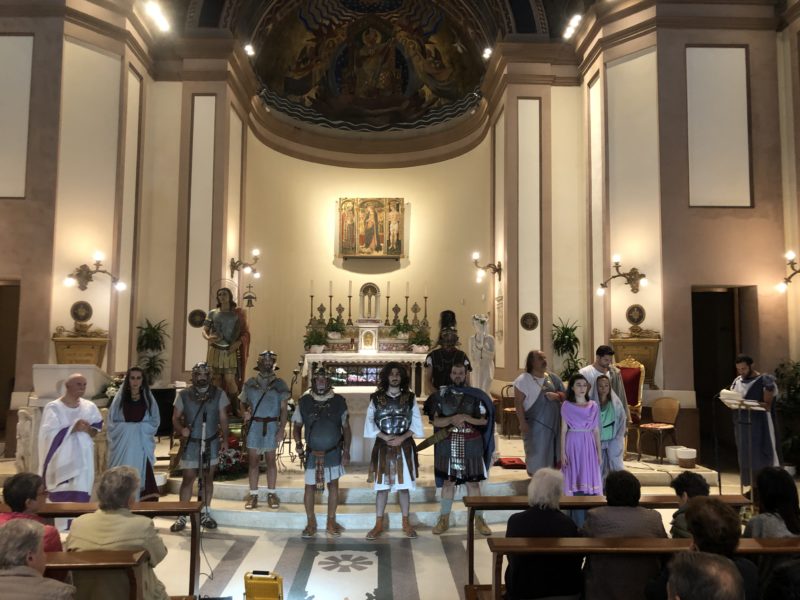 CUPRA MARITTIMA – Nell’ambito dei festeggiamenti di San Benedetto Martire sabato 12 ottobre (replica domenica 13 al Paese Alto di San Benedetto del Tronto) nella chiesa di San Basso è andata in scena la rievocazione storica del martirio di San Benedetto ad opera della compagnia teatrale Artocria.