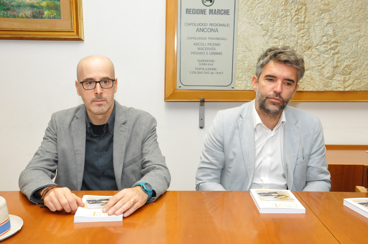 Ieri il progetto Marche d’Autore patrocinato e sostenuto dalla Regione Marche- Assessorato alla Cultura , in collaborazione con Confesercenti Macerata è stato presentato in Regione alla presenza del Maestro Silvio Craia che insieme a Enzo Cucchi, Eliseo Mattiacci, Tullio Pericoli, Ubaldo Bartolini a cui si aggiunge Dante Ferretti– autore della copertina con un’opera originale – diventano a loro volta narratori delle 5 province marchigiane in un dialogo tra linguaggi diversi, tra scrittura e arte figurativa. Un terzo elemento si unisce ad arricchire questo progetto culturale, il Teatro: “La mostra per un giorno” nel foyer di uno dei tanti teatri marchigiani in occasione del debutto di uno spettacolo. Come ha spiegato Gilberto Santini, direttore dell’AMAT: “ Abbiamo accolto subito e con grande entusiasmo questa idea: un vero e proprio baule teatrale ( progettato dallo studio di architettura Myras di Urbino) che si apre a fisarmonica sarà l’espositore delle 6 opere figurative che potranno essere ammirate dagli spettatori prima dell’inizio dello spettacolo e assistere alla presentazione del volume.” Una mostra itinerante, dunque, in un teatro che per un giorno diventa luogo espositivo. Il calendario inizia da Pesaro,Teatro Rossini, il 17 ottobre 2019 e prosegue ad Ascoli Piceno, Teatro Ventidio Basso, 13 novembre 2019, Fabriano, Teatro Gentile, 5 dicembre 2019, Macerata, Teatro Lauro Rossi, 13 dicembre 2019, Fermo, Teatro dell’Aquila, 24 Marzo 2020. Il volume “Marche d’autore” – ha spiegato Gionata Arpetti- è diviso in cinque macro capitoli (le province marchigiane) e indaga la bellezza e la complessità della nostra Regione, femminile plurale, attraverso 31 tra le voci narrative più interessanti del nostro territorio.” Insomma, “un’autobiografia territoriale”, ha chiosato Miliozzi. Il Maestro Craia, 82 anni, anche oggi ha parlato attraverso la sua penna disegnando al momento, con pochi tratti essenziali, paesaggi montani che ha firmato e voluto regalare ai presenti. Anche la Direttrice di Confesercenti Macerata , Lucia Biagioli ha detto che “questo progetto è stato un esperimento diventato però realtà concreta importante, l’espressione diretta di una prospettiva territoriale ma con una visione regionale che tiene insieme economia e cultura.” Il progetto Marche d’Autore sostenuto dalla Regione Marche con tutta probabilità proseguirà con un insieme di racconti sui marchigiani illustri sulla base di un’idea lanciata dallo stesso assessore regionale Moreno Pieroni che ha definito questo volume “ un affresco di una regione in gran parte ancora da esplorare nelle sue rilevanze, un territorio e una comunità della quale non si smette mai di restare meravigliati sia per i talenti che nel passato e nel presente è stata capace di produrre, sia per la capacità di coniugare storia, tradizione e innovazione culturale.”