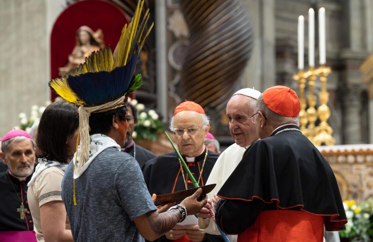 “Creare Commissioni che lavorino sul metodo per dare un volto amazzonico anche alla liturgia”. È una delle proposte emerse al Sinodo per l’Amazzonia, dove il tema dell’inculturazione è stato uno degli argomenti più dibattuti. A riferirne sono stati mons. Rafael Alfonso Escudero López-Brea, vescovo Prelato di Moyobamba, in Perù, e mons. Eugenio Coter, vicario apostolico di Pando e vescovo titolare di Tibiuca (Bolivia), durante il brieifing in sala stampa vaticana. “Al Sinodo si sta chiedendo un rito diverso da quello che ha già la Chiesa”, ha spiegato mons. Lopez-Brea a proposito della necessità di “introdurre nella celebrazione eucaristica simboli e riti che non abbiano un impatto su ciò che è essenziale nel rito, però arricchiscano la celebrazione affinché si possa celebrare l’Eucaristia con le peculiarità delle popolazioni indigene”. “Non sarebbe qualcosa di nuovo nella storia della Chiesa”, ha fatto notare il vescovo: “Oltre al rito romano, esistono altri riti – ha precisato – come il rito per le Chiese cattoliche orientali, e anche in alcune zone dell’Africa si sono introdotti elementi tipici all’interno della celebrazione eucaristica”. “C’è da fare un adattamento del rito liturgico”, ha affermato il vescovo: “Ci sono elementi strutturali della liturgia che non cambiano da duemila anni, in quanto elementi essenziali, ed altri che possono essere approfonditi perché parlino alla gente che vi partecipa”.