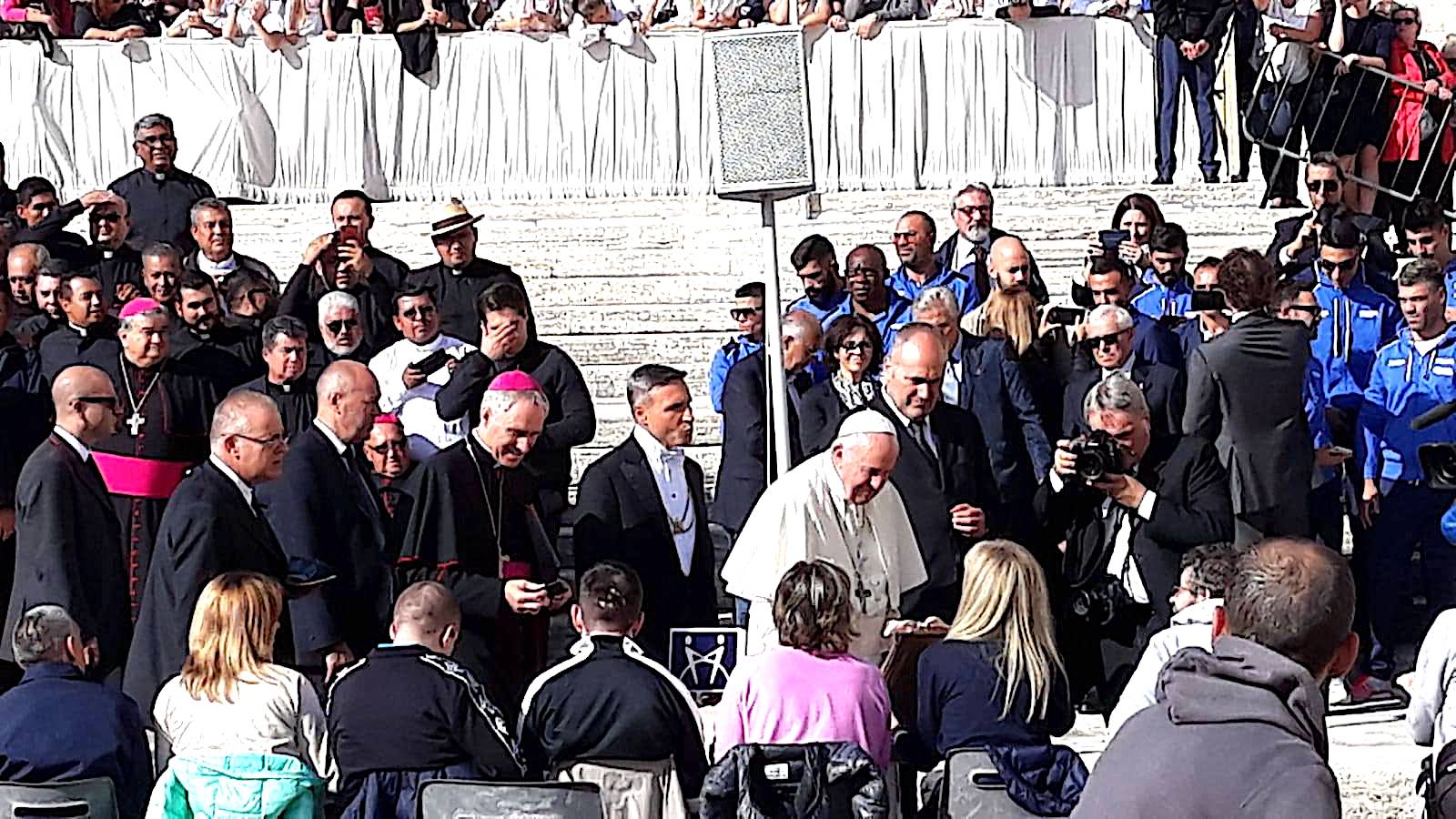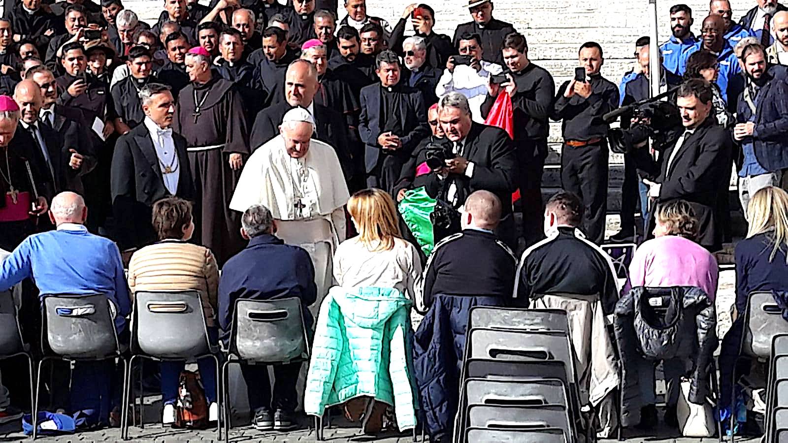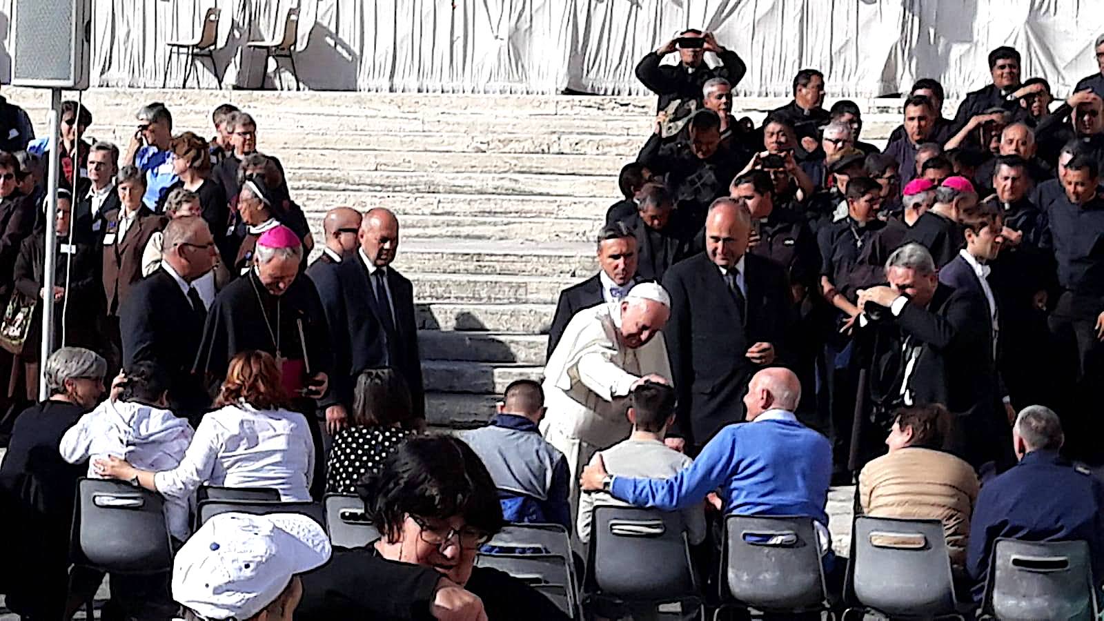 Essi, presenti in prima fila, sprizzavano di felicità da tutti i pori mentre erano salutati e accarezzati, uno a uno, dal Papa!