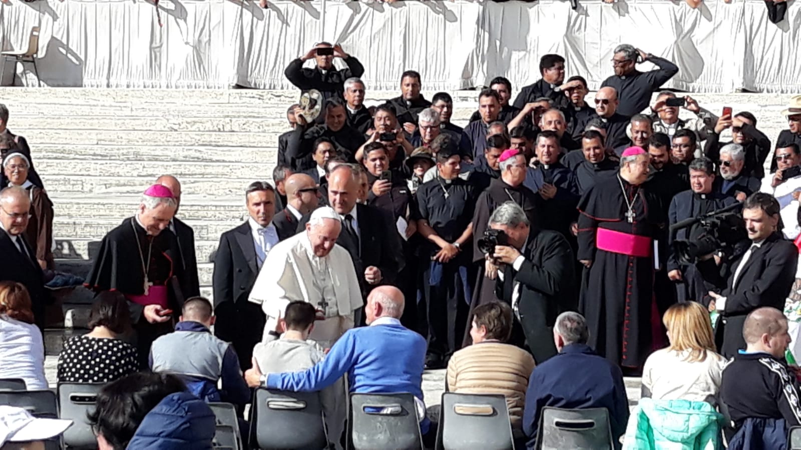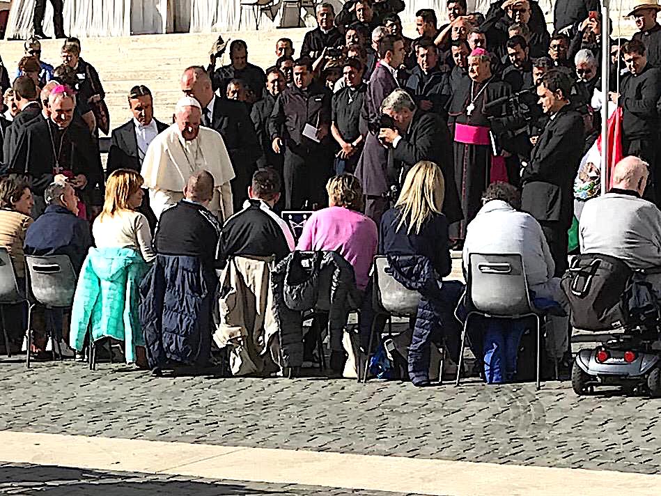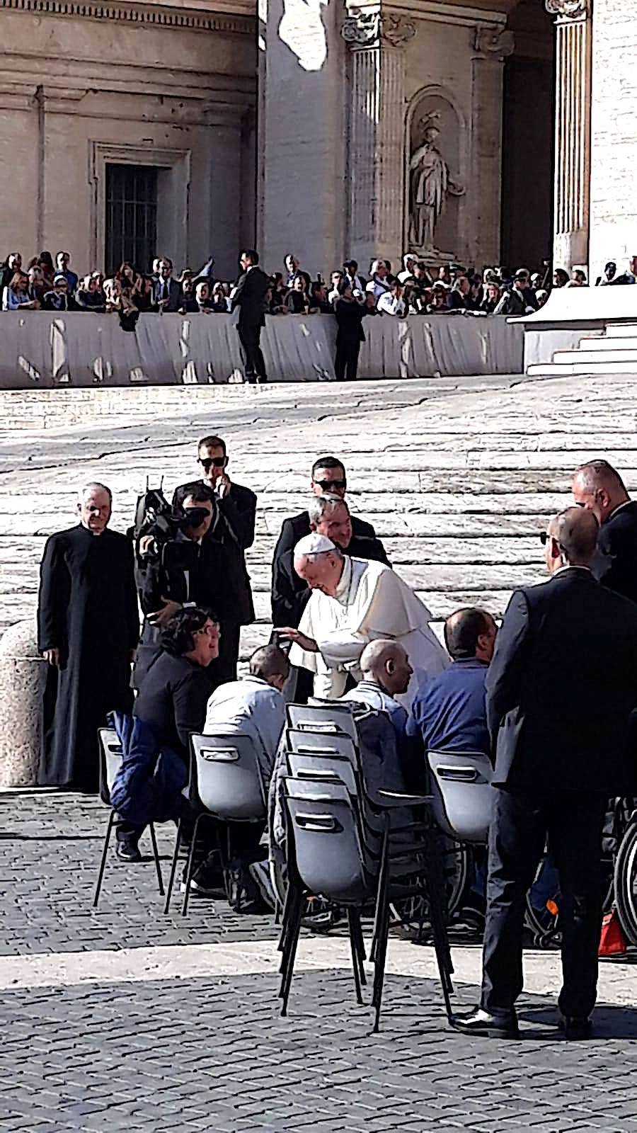 Essi, presenti in prima fila, sprizzavano di felicità da tutti i pori mentre erano salutati e accarezzati, uno a uno, dal Papa!
