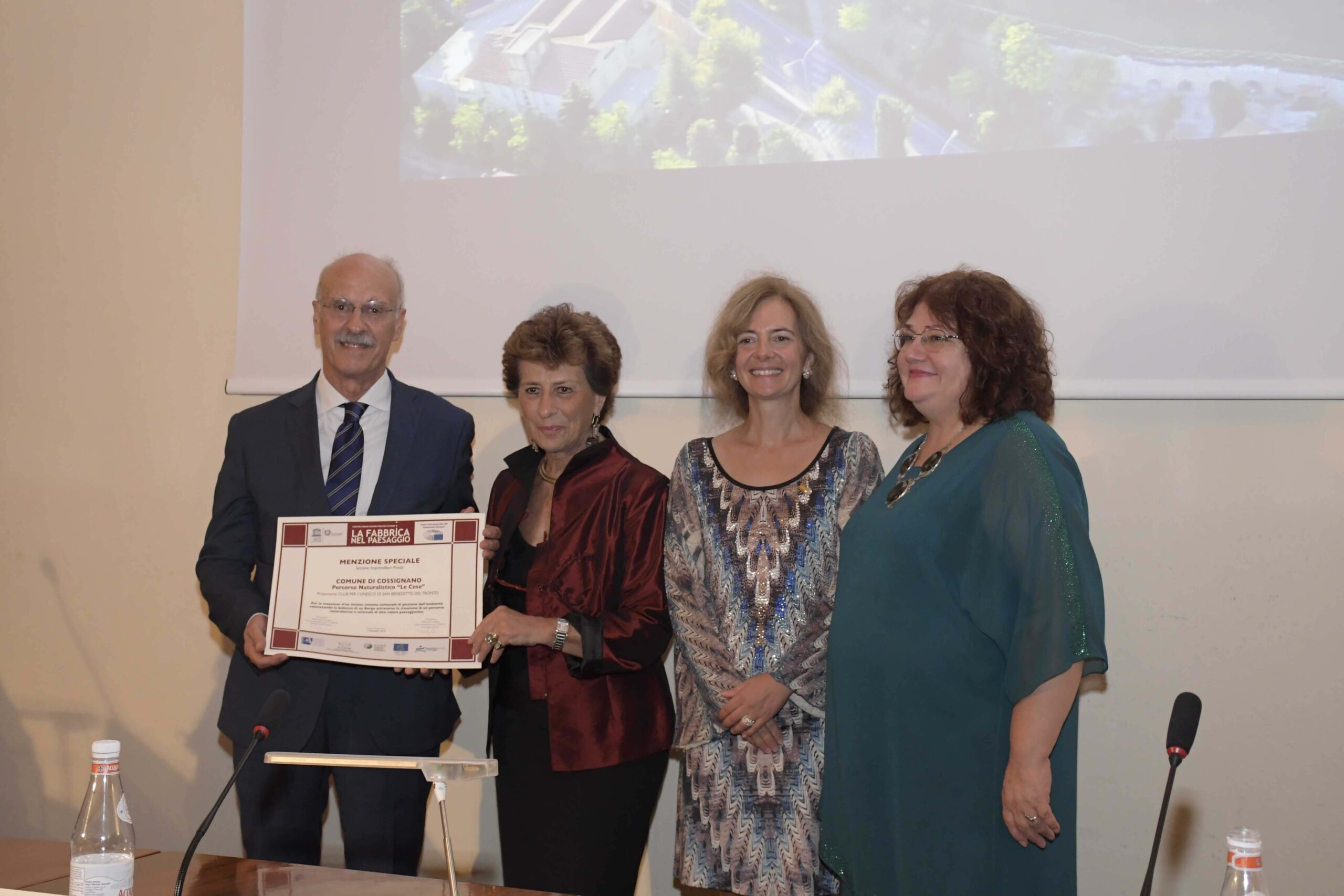 Il Sindaco di Cossignano, Giancarlo Vesperini, accompagnato da Laura Cennini presidente del Club per l’UNESCO di San Benedetto del Tronto, ha ritirato l’attestato di Menzione Speciale esprimendo ringraziamenti per il riconoscimento di un progetto nato dall’idea di coinvolgere l’intero territorio sull’importanza di proteggere il paesaggio come bene culturale ed ambientale, rafforzando gli interventi di sensibilizzazione e rispetto dell’ambiente.