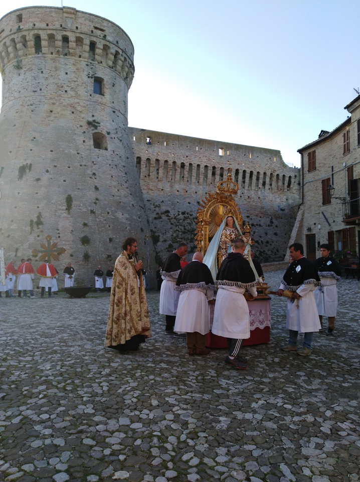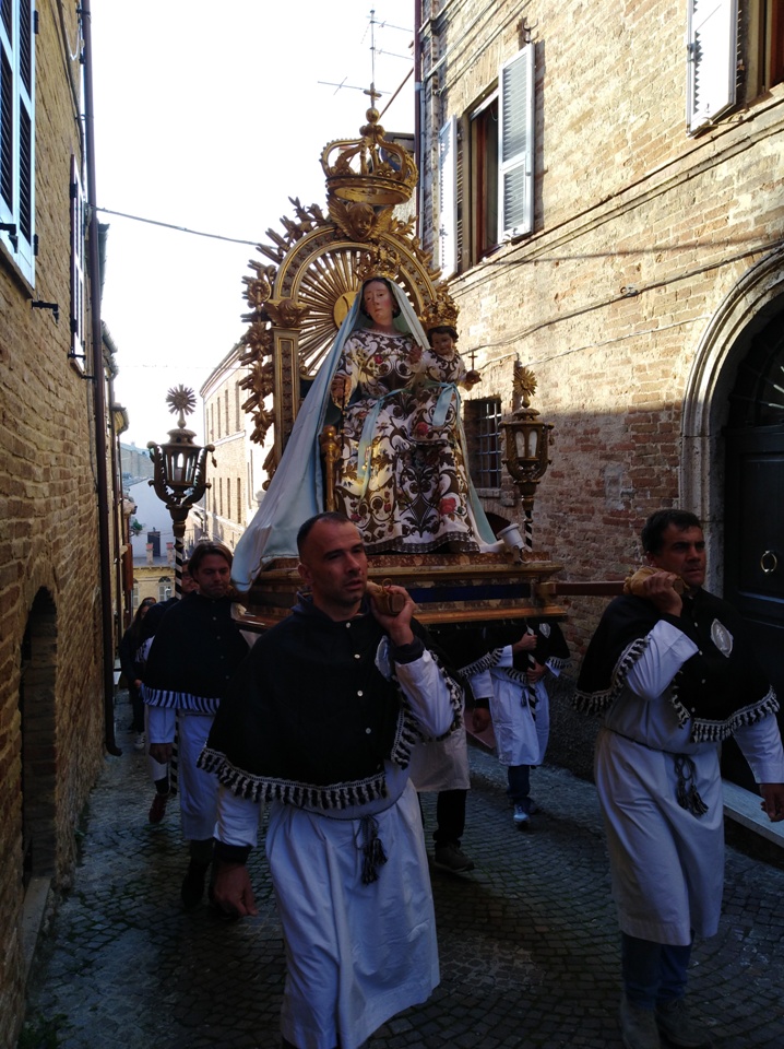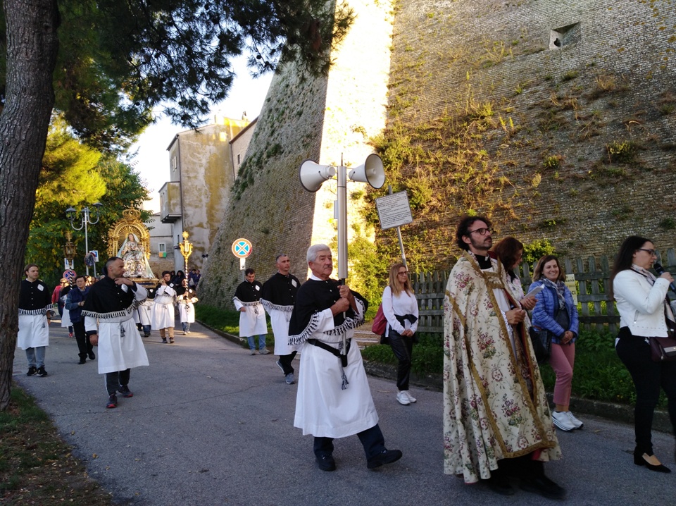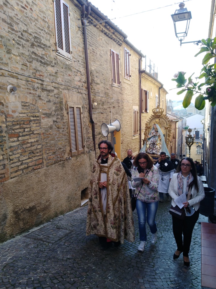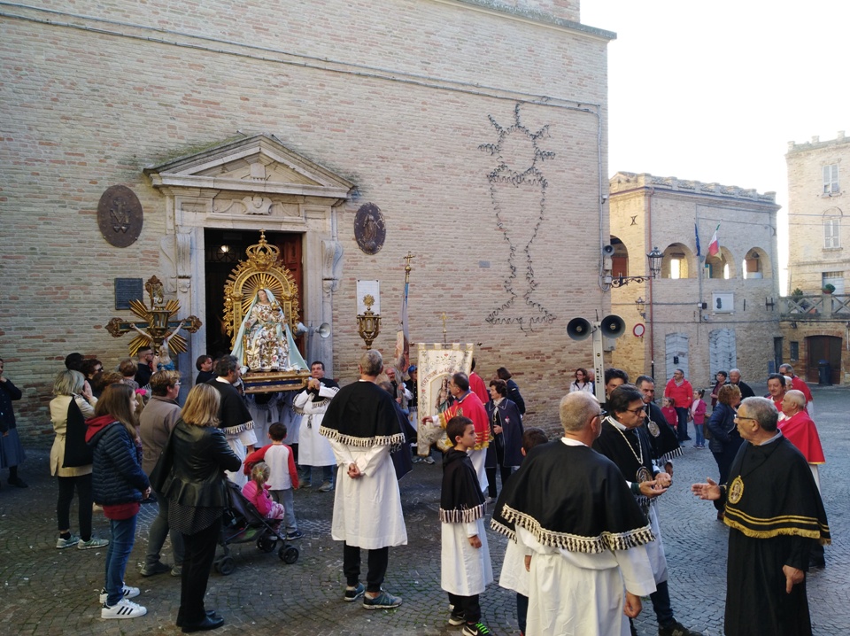 ACQUAVIVA PICENA – Domenica 20 ottobre alle ore 17:00, come da tradizione, la comunità parrocchiale di Acquaviva Picena si è ritrovata per la processione con l’antica immagine della Madonna del Rosario. Custodita dall’omonima confraternita, l’icona mariana cara alla popolazione, ha ripercorso l’antico tragitto per i vicoli del centro al ritmo della preghiera del rosario, soffermandosi sull’importanza di seguire l’esempio di Maria nella vita quotidiana, fiduciosi come Lei nell’amore del Signore.