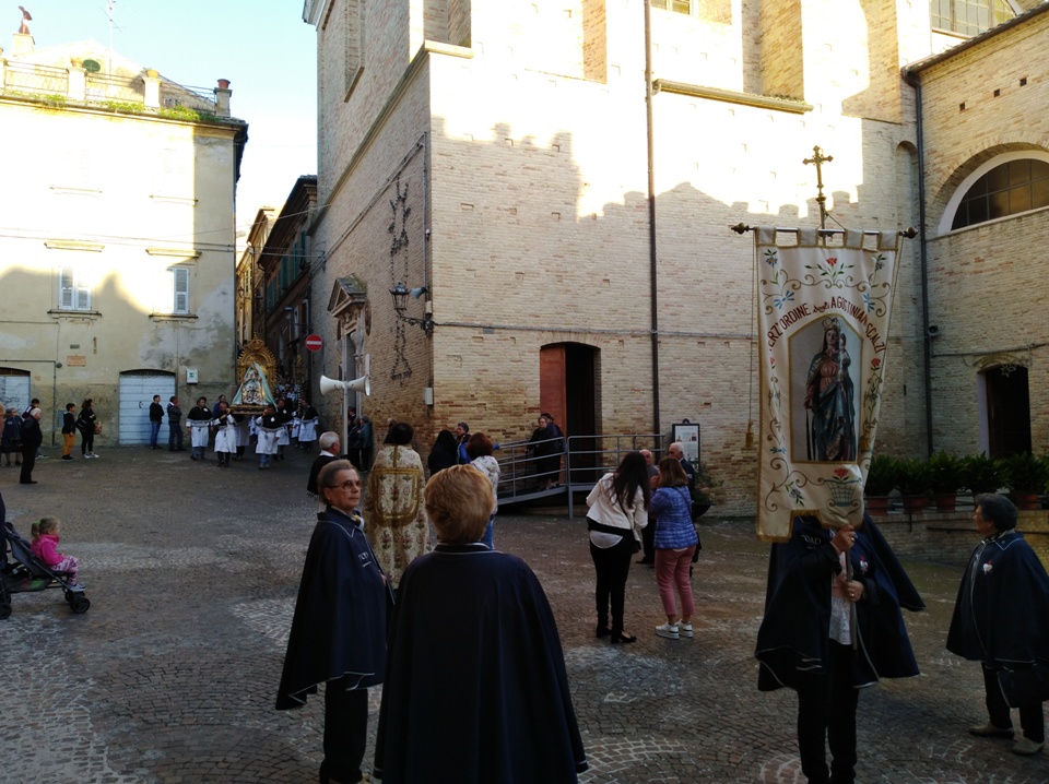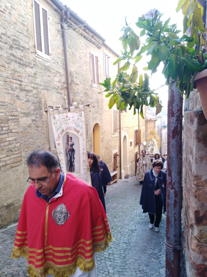 La processione, oltre che dalla Confraternita del Rosario, è stata animata dalle altre confraternite della parrocchia: Santissimo Sacramento e del Cristo Morto insieme al terz’ordine femminile agostiniano.