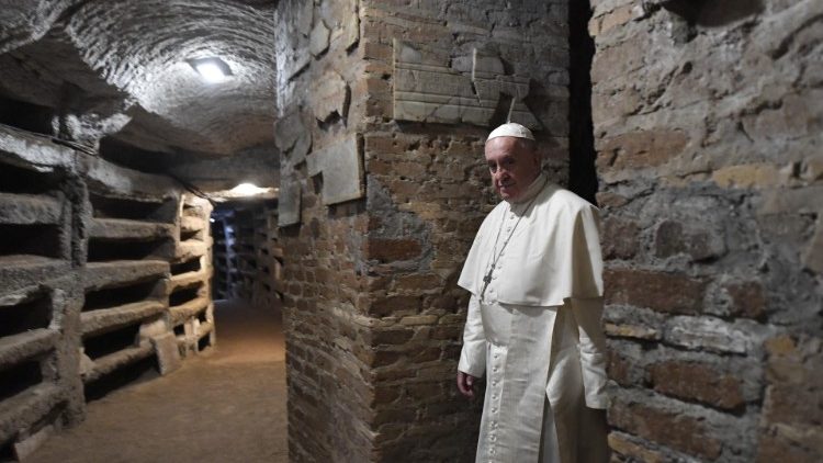 “La carta di identità del cristiano sono le beatitudini”. Lo ha detto Papa Francesco celebrando sabato la messa nella Commemorazione di tutti i defunti alle Catacombe di Priscilla a Roma. Alla sua prima celebrazione in una catacomba, Bergoglio non ha mancato di ricordare tutti quei cristiani di ieri e di oggi che sono costretti “a nascondersi” perché perseguitati. “Un momento di storia brutto che non è stato superato. Anche oggi ci sono tante catacombe in altri Paesi dove i cristiani devono fingere di fare una festa, un compleanno per celebrare l’eucarestia, perché è vietato farlo. Anche oggi ci sono dei cristiani perseguitati più che nei primi secoli”, ha ribadito il Pontefice. E a partire da questa considerazione inziale il Papa ha proposto una riflessione centrata su tre parole: “identità, posto e speranza”. “L’identità di questa gente che si radunava qui per la messa e per lodare il Signore è la stessa dei nostri fratelli in tanti Paesi dove oggi essere cristiani è un crimine. L’identità del cristiano sono le beatitudini, non ce n’è un’altra. Se tu vivi così sei cristiano”, ha ribadito Papa Francesco, e questo a prescindere dalle associazioni e dai movimenti cui si appartiene. “Tutte cose belle – ha aggiunto il Pontefice – ma la tua carta di identità è questa e se non ce l’hai non serve a nulla stare nei movimenti o altre appartenenze”.
