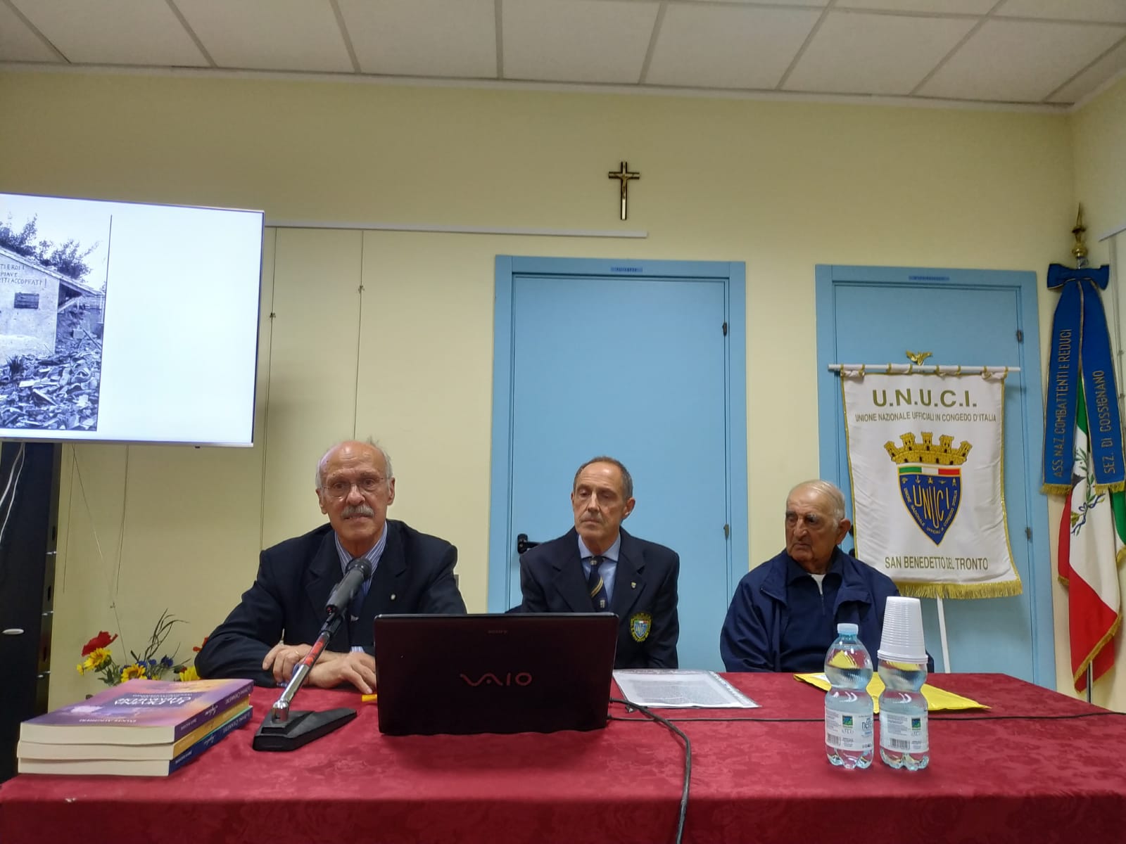 L’iniziativa, la prima delle numerose previste per le celebrazioni del IV Novembre, Giorno dell’Unità Nazionale e Giornata delle Forze Armate, ha previsto l’intervento del Dott. Maddalena Beniamino, Presidente UNUCI sez. di San Benedetto del Tronto. Il Dott. Maddalena, presentato dal sindaco di Cossignano, il Dott. Vesperini Giancarlo, ha intrattenuto la numerosa platea accorsa con un intervento riguardante “Il primo conflitto mondiale ad un secolo dalla conclusione”.