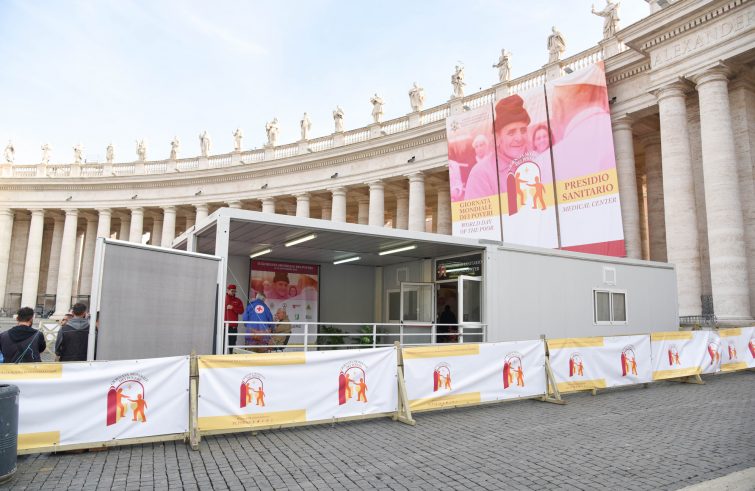 In occasione della terza edizione della Giornata mondiale dei poveri, istituita da Papa Francesco al termine del Giubileo della Misericordia nel 2016, verrà ripetuta anche quest’anno l’esperienza del presidio sanitario in piazza San Pietro, una struttura sanitaria polifunzionale allestita nel lato sinistro del Colonnato, “che per una settimana – spiega un comunicato del Pontificio Consiglio per la Promozione della nuova evangelizzazione – sarà in grado di fornire visite mediche specialistiche, cure, analisi cliniche ed esami strumentali a titolo completamente gratuito per tutte le persone indigenti che normalmente avrebbero enormi difficoltà ad accedere a questo tipo di servizio”. “Grazie al supporto di importanti realtà sanitarie e alla diffusione che di anno in anno guadagna l’iniziativa, quest’anno – prosegue il comunicato – sono aumentate le specializzazioni mediche fruibili, che saranno: medicina generale, cardiologia, diabetologia, dermatologia, reumatologia, infettivologia, ginecologia, oculistica, podologia, l’ambulatorio di analisi cliniche, per la vaccinazione antinfluenzale e per le ecografie”. La struttura sarà in funzione da domenica 10 a domenica 17 novembre, dalle 8 alle 20 (con delle brevi sospensioni del servizio mercoledì mattina per l’Udienza del Santo Padre e domenica mattina per la preghiera dell’Angelus).