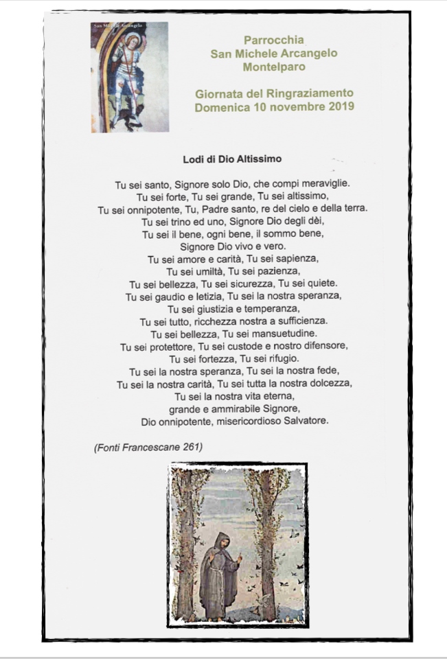 L’attimo, però, più toccante è stato quello in cui, alla fine della cerimonia, tutti i fedeli presenti, per questo sollecitati dal celebrante Fra Emanuele, hanno condiviso a grande voce le “Lodi di Dio Altissimo” (preghiera di Fonti Francescane 261):