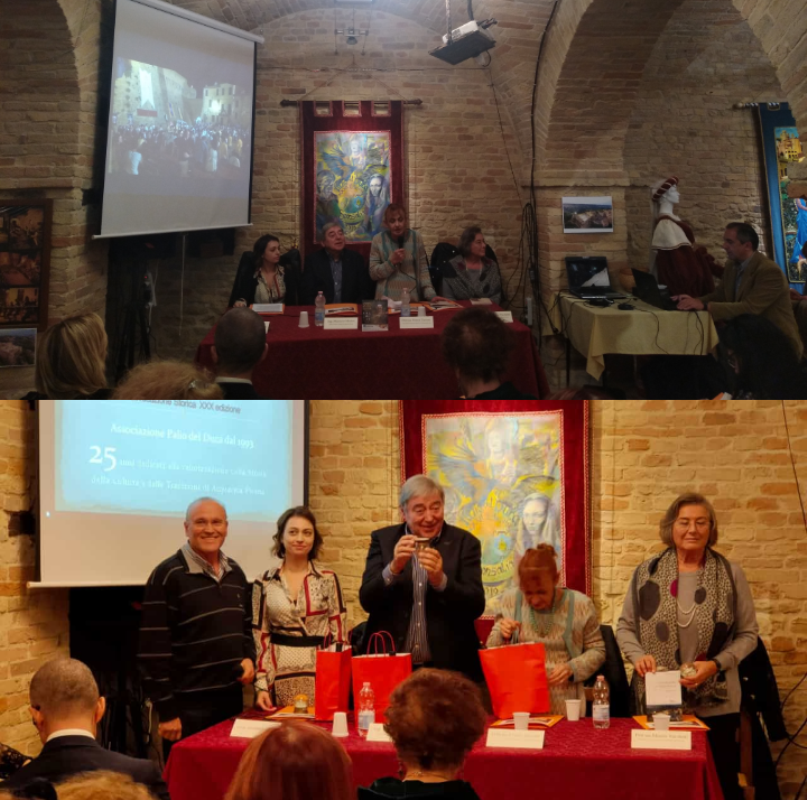 Al termine il sindaco Rosetti e l’assessore Riga hanno salutato i presenti e ringraziato i relatori e gli organizzatori. L’Associazione Palio del Duca ha poi fatto dono di un grazioso souvenir di Acquaviva.