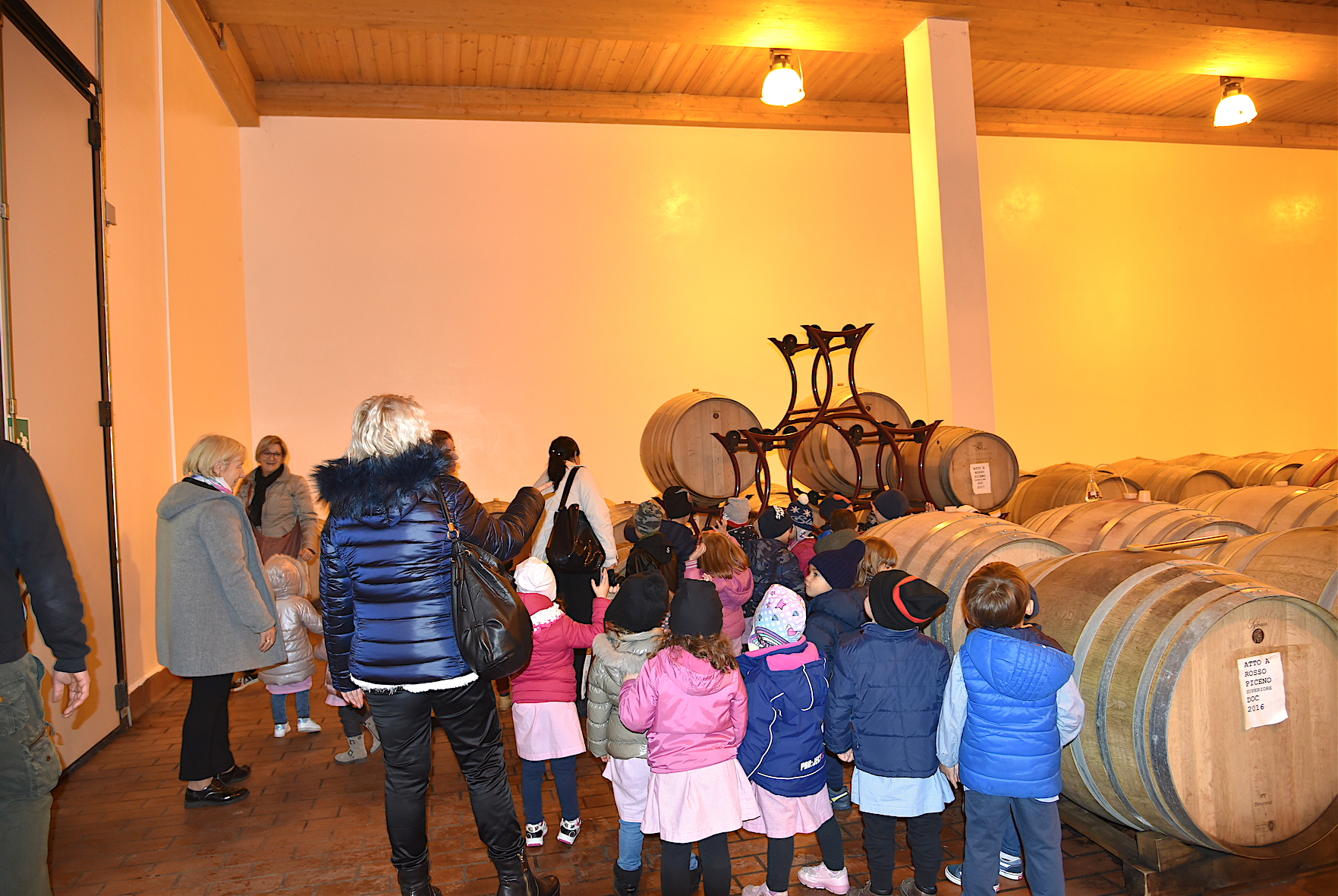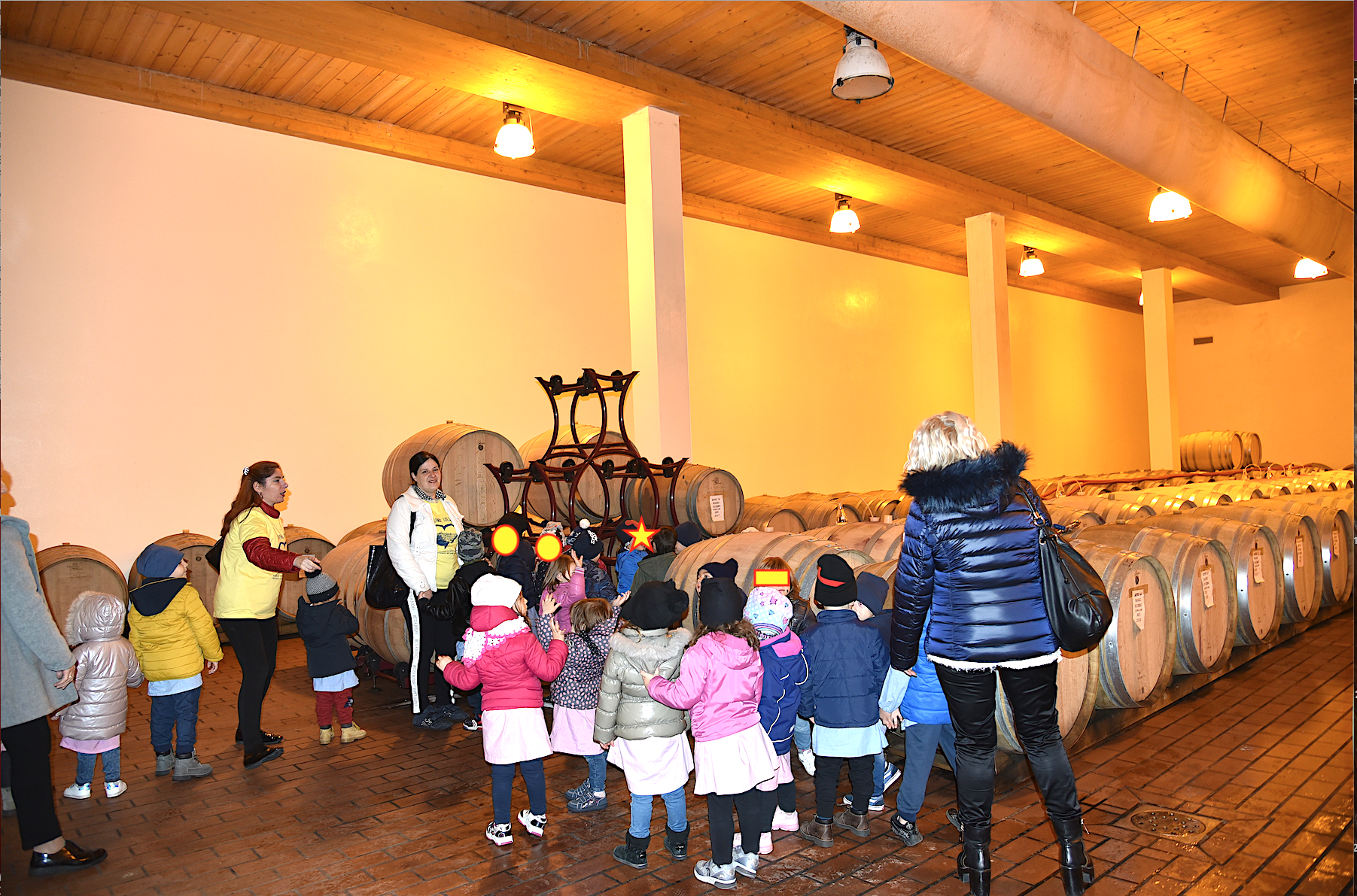 Questa volta i piccoli “studenti”, accompagnati dalle loro insegnanti e assistenti, si sono recati, grazie all’interessamento di Clelia Basili (già insegnante a Montelparo e ora a Force) e alla collaborazione di Antonella Guerrieri, Daniela Litta e Laura Caferri (della Scuola dell’infanzia di Montelparo), presso la cantina “La Canosa”.