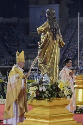 “Tutti siamo discepoli missionari quando ci decidiamo ad essere parte viva della famiglia del Signore e lo facciamo condividendo come Lui lo ha fatto”. Ne è convinto il Papa, che nell’omelia della messa nello stadio di Bangkok ha sottolineato come Gesù “non ha avuto paura di sedersi a tavola con i peccatori, per assicurare loro che alla tavola del Padre e del creato c’era un posto riservato anche per loro; ha toccato coloro che si consideravano impuri e, lasciandosi toccare da loro, li ha aiutati a comprendere la vicinanza di Dio, anzi, a comprendere che loro erano i beati”. “Penso in particolar modo a quei bambini, bambine e donne esposti alla prostituzione e alla tratta, sfigurati nella loro dignità più autentica”, l’elenco dettagliato del Papa: “A quei giovani schiavi della droga e del non-senso che finisce per oscurare il loro sguardo e bruciare i loro sogni; penso ai migranti spogliati delle loro case e delle loro famiglie, come pure tanti altri che, come loro, possono sentirsi dimenticati, orfani, abbandonati, senza la forza, la luce e la consolazione dell’amicizia con Gesù Cristo, senza una comunità di fede che li accolga, senza un orizzonte di senso e di vita”. E ancora: “Penso ai pescatori sfruttati, ai mendicanti ignorati. Essi fanno parte della nostra famiglia, sono nostre madri e nostri fratelli”. “Non priviamo le nostre comunità dei loro volti, delle loro piaghe, dei loro sorrisi, delle loro vite”, l’appello: “E non priviamo le loro piaghe e le loro ferite dell’unzione misericordiosa dell’amore di Dio. Il discepolo missionario sa che l’evangelizzazione non è accumulare adesioni né apparire potenti, ma aprire porte per vivere e condividere l’abbraccio misericordioso e risanante di Dio Padre che ci rende famiglia”. “Andiamo avanti nel cammino, sulle orme dei primi missionari, per incontrare, scoprire e riconoscere con gioia tutti i volti di madri, padri e fratelli che il Signore ci vuole regalare e mancano al nostro banchetto domenicale”, l’invito finale. Prima della benedizione finale, l’arcivescovo di Bangkok, il card. Francis Xavier Kriengsak Kovithavanij, rivolge al Papa il suo saluto e gli offre un dono. Prima di rientrare alla nunziatura apostolica di Bangkok, il Papa saluta il direttore e il vice direttore dello stadio nazionale.