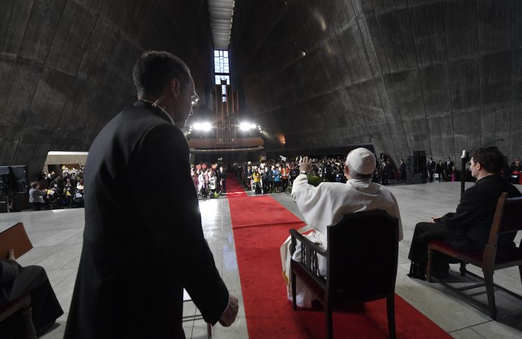 “Con noi qui c’è un piccolo gruppo di rifugiati”, ha fatto notare Francesco: “La vostra accoglienza testimonierà che per molti possono essere estranei, ma per voi si possono considerare fratelli e sorelle”. “Un maestro saggio una volta disse che la chiave per crescere nella saggezza non sta tanto nel trovare le risposte giuste, ma nello scoprire le domande giuste”, ha raccontato il Papa: “Spero che possiate farvi delle ottime domande, mettervi in discussione e aiutare gli altri a porsi domande buone e provocatorie sul significato della vita e su come possiamo costruire un futuro migliore per coloro che verranno dopo noi”. “Non confondete e non stordite i vostri sogni, date loro spazio e osate guardare a grandi orizzonti, guardare ciò che vi attende se avrete il coraggio di costruirli insieme”, l’appello finale: “Il Giappone ha bisogno di voi, il mondo ha bisogno di voi, svegli e generosi, gioiosi ed entusiasti, capace di costruire una casa per tutti. Prego perché cresciate in saggezza spirituale e scopriate in questa vita la strada verso la vera felicità”. Al termine dell’incontro, il Papa è rientrato in auto alla nunziatura apostolica, dove ha pranzato con i membri del seguito papale.