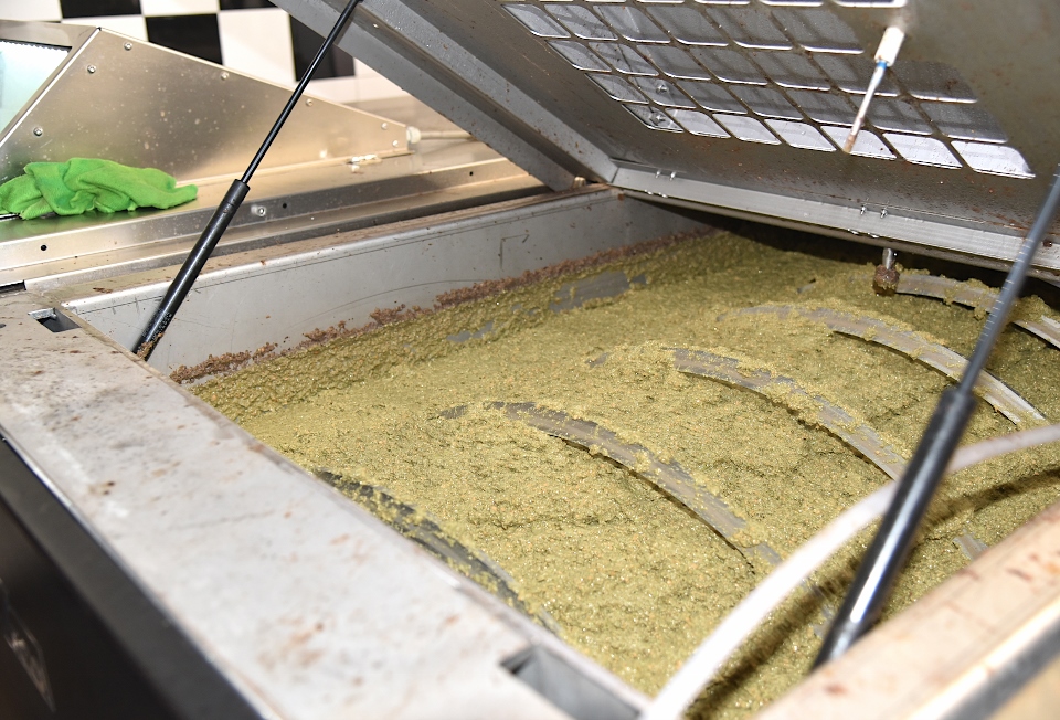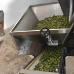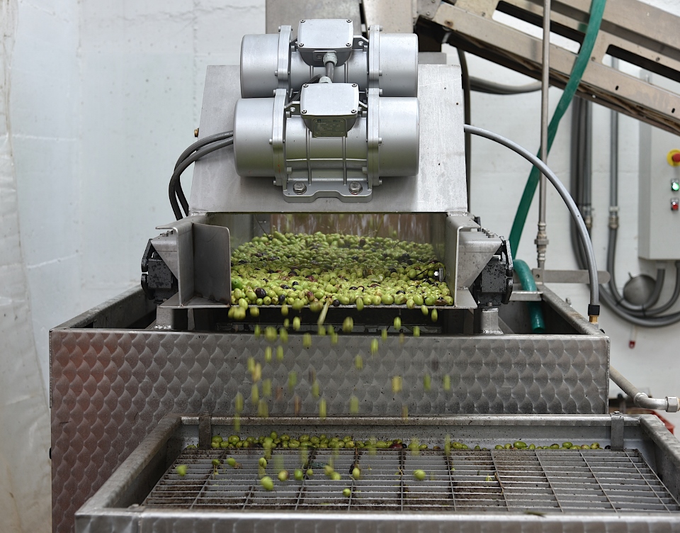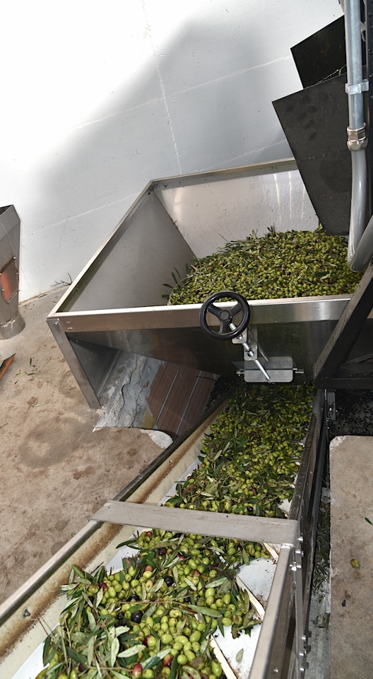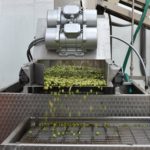 Dopo essere state sottoposte a defogliazione e lavaggio, tramite il passaggio su appositi nastri trasportatori, le olive vengono frantumate fino ad ottenere una pasta grossolana.